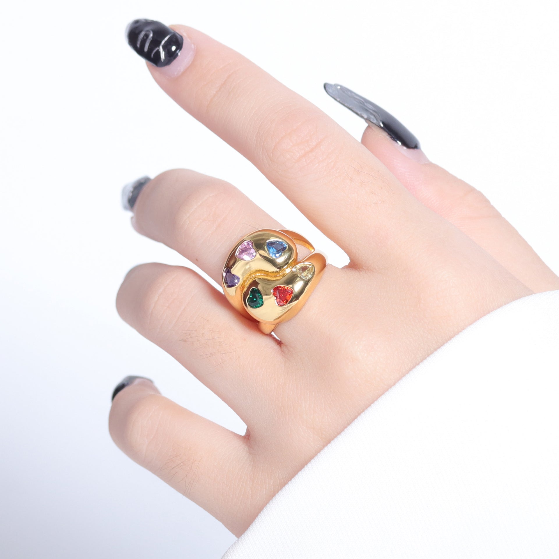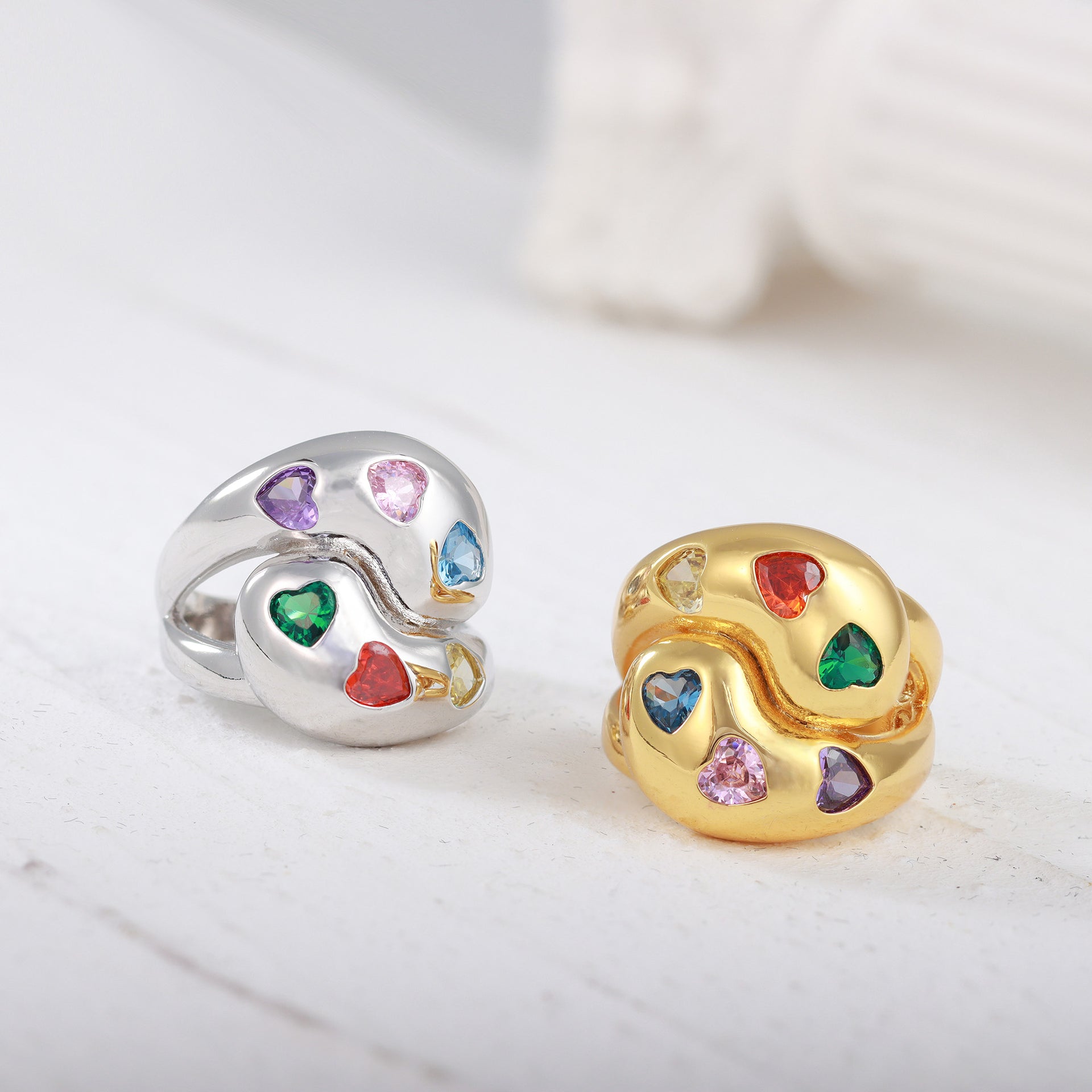 - Anel de pedras corações coloridos - XYR103544-2