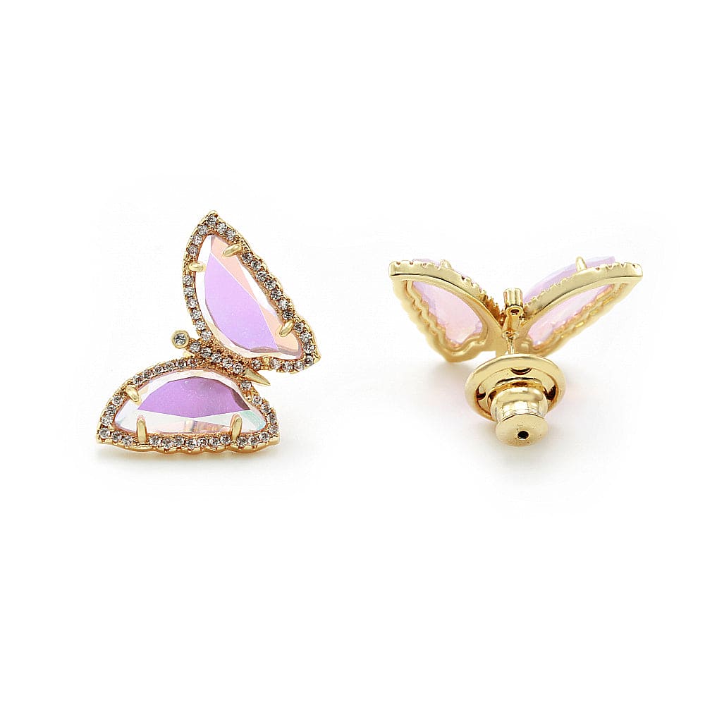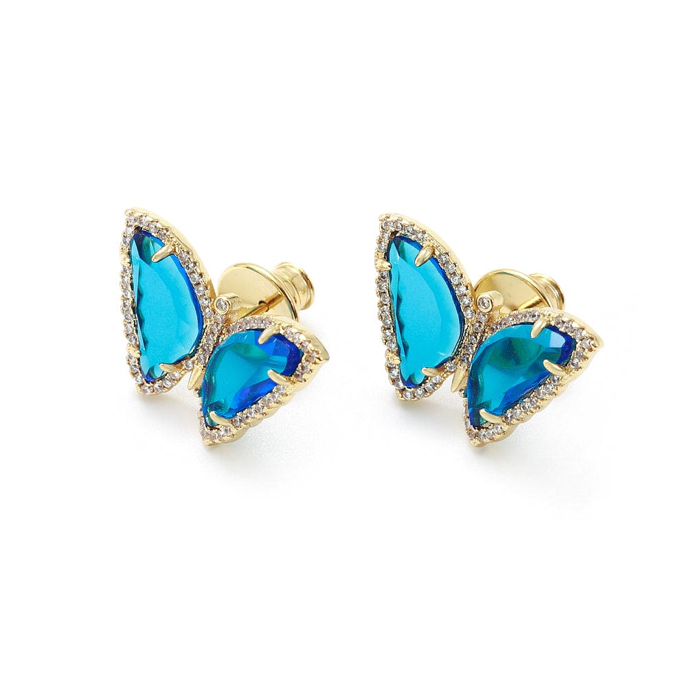 Pedra: Micro zircônia cristal e vidro lapidado formato de borboleta azul ou rosa