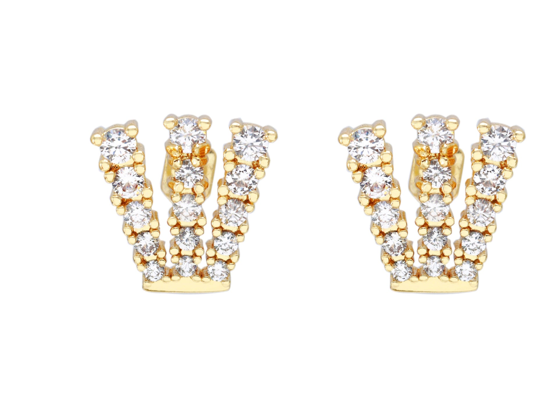 Brinco em latão de alta fusão cravejado manualmente com micro zircônia 5A Premium, nas opções de banho Ouro 18k, Ródio branco ou Bruto.