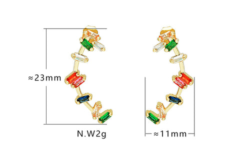 Brinco em latão de alta fusão cravejado manualmente com vidro lapidado, nas opções de banho Ouro 18k, Ródio branco ou Bruto.