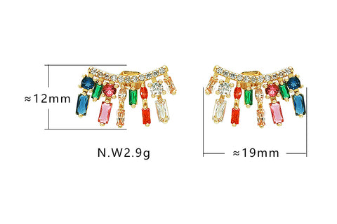 Brinco em latão de alta fusão cravejado manualmente com micro zircônia 5A e vidro lapidado, nas opções de banho Ouro 18k, Ródio branco ou Bruto.