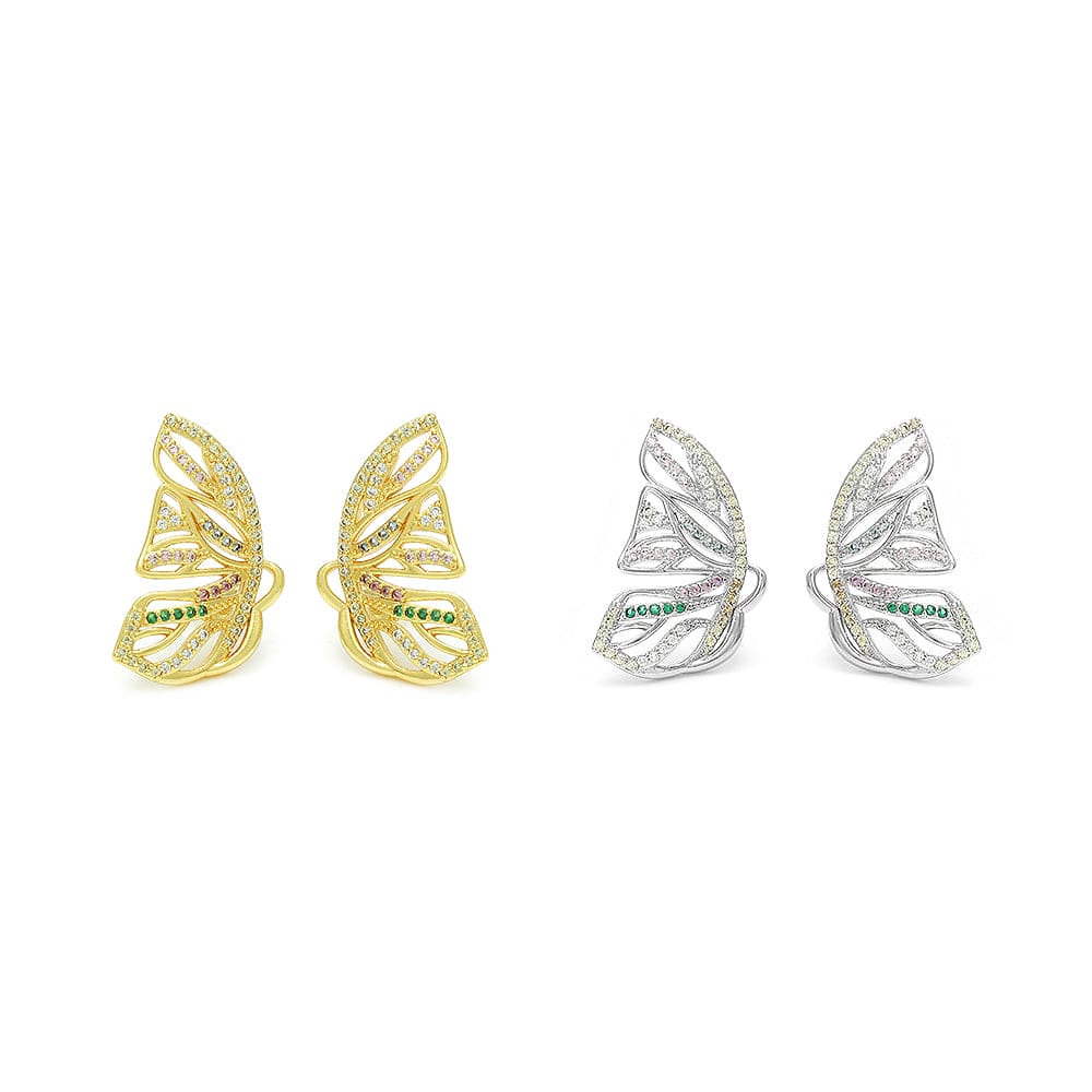 Brinco em latão de alta fusão cravejado manualmente com micro zircônia 5A Premium, nas opções de banho Ouro 18k, Ródio branco ou Bruto.