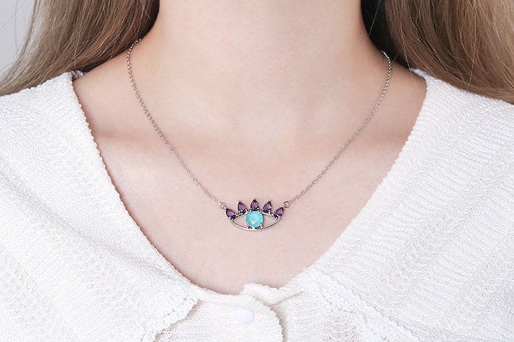 Colar em latão de alta fusão cravejado manualmente com vidro lapidado e pedra fusion natural, nas opções de banho Ouro 18k, Ródio branco ou Bruto.