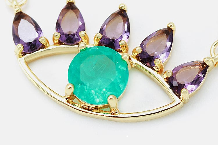Pedra: mix de cores (Vidro lapidado em formato de gota roxo e pedra fusion natural redonda verde)