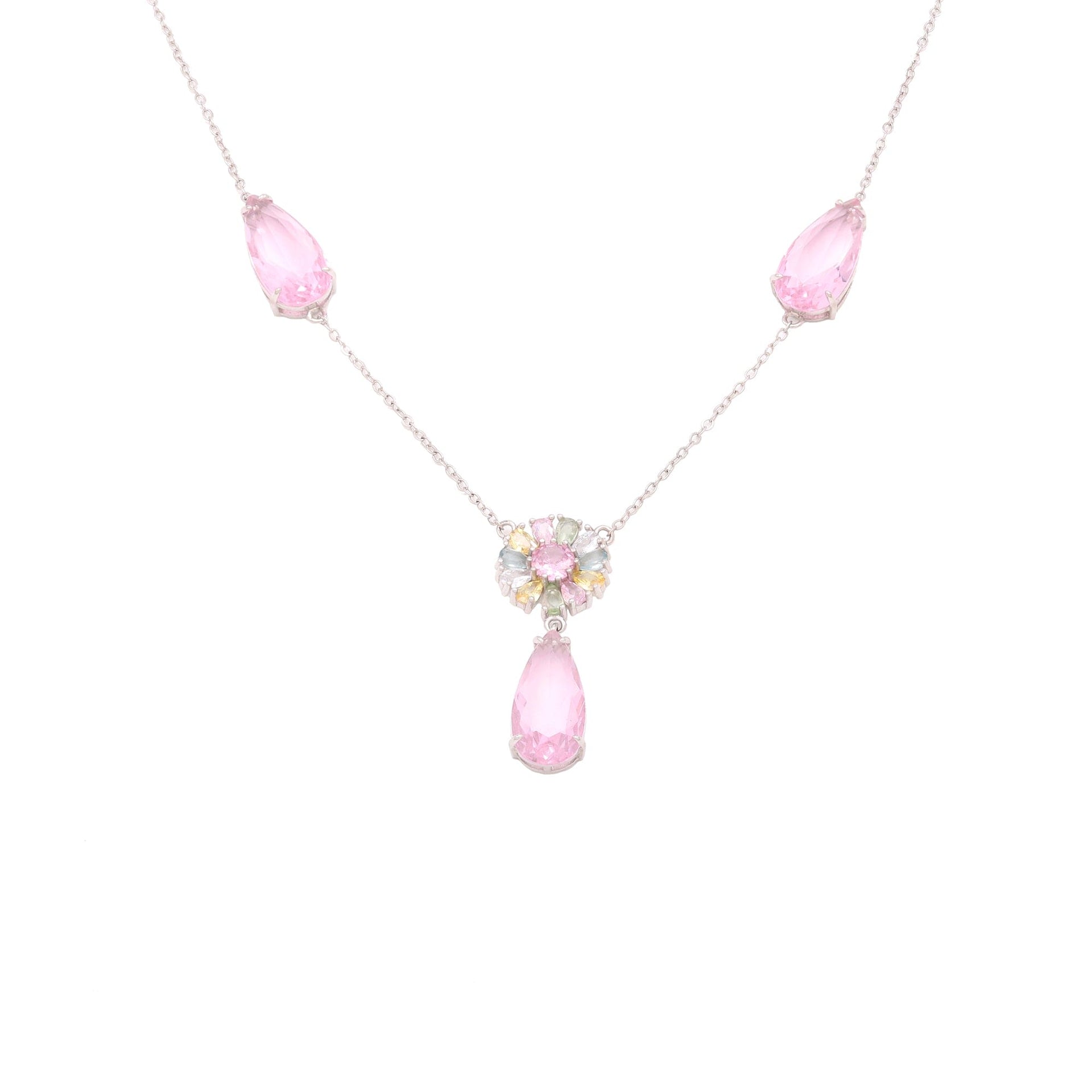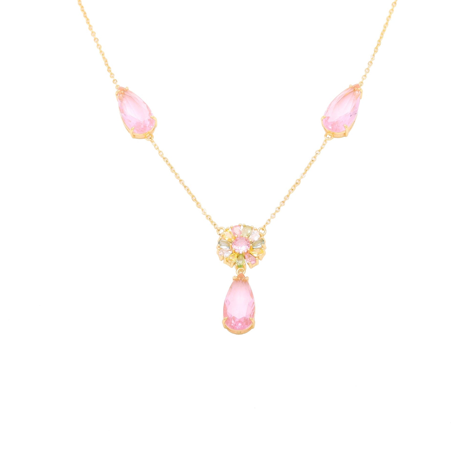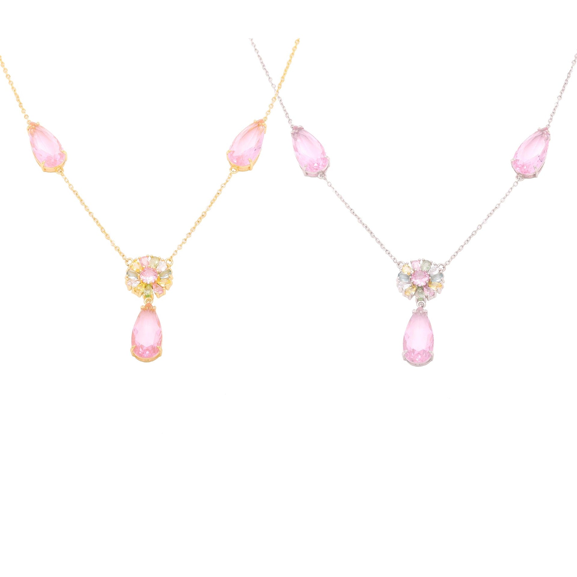 Colar em latão de alta fusão cravejado manualmente com vidro lapidado e nas opções de banho Ouro 18k, Ródio branco .