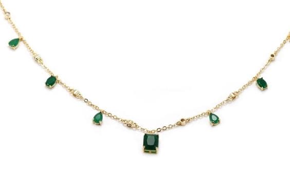 Colar em latão de alta fusão cravejado manualmente com zircônia e vidro lapidado, nas opções de banho Ouro 18k, Ródio branco ou Bruto.