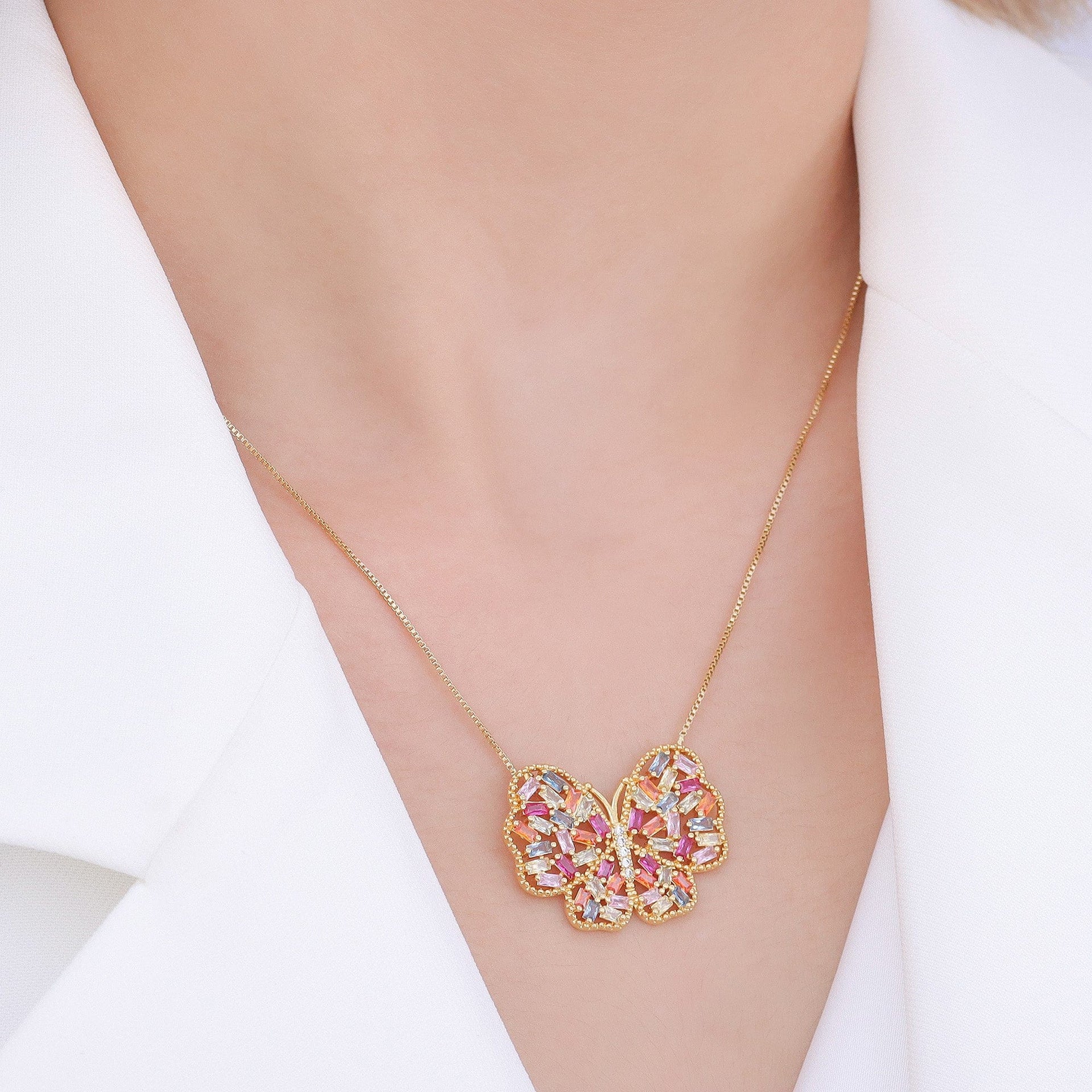 Colar em latão de alta fusão cravejado manualmente com micro zircônia 5A premium e vidro lapidado, nas opções de banho Ouro 18k, Ródio branco ou Bruto.