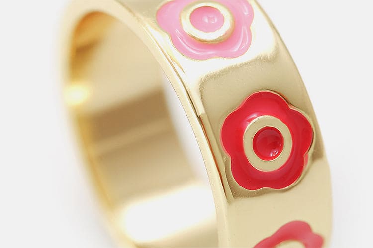 Anel de alta fusão polido e esmaltado manualmente, nas opções de banho Ouro 18k, Ródio branco ou Bruto.