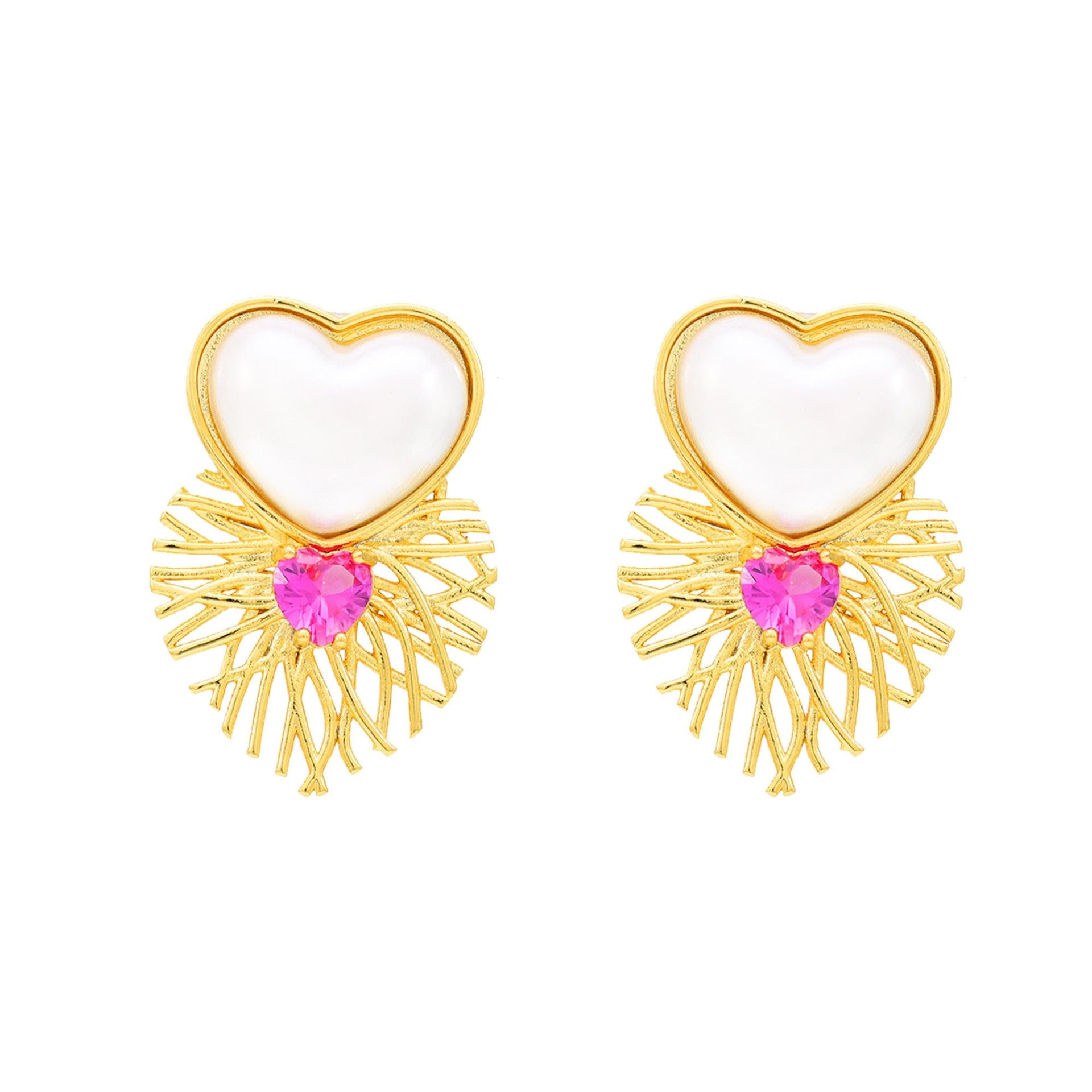 Brinco em latão de alta fusão cravejado manualmente com micro zircônia 5A premium e vidro lapidado, nas opções de banho Ouro 18k, Ródio branco ou Bruto.