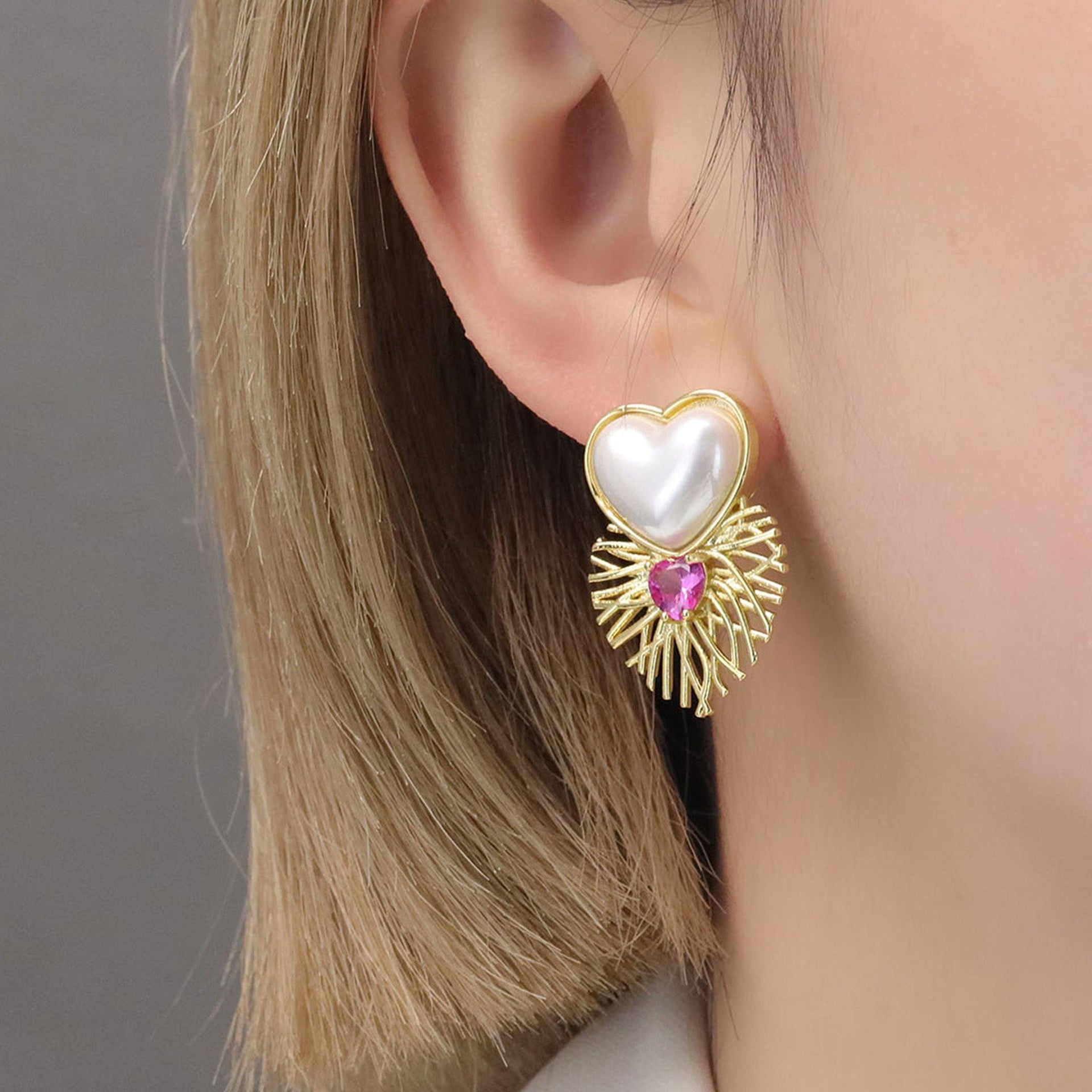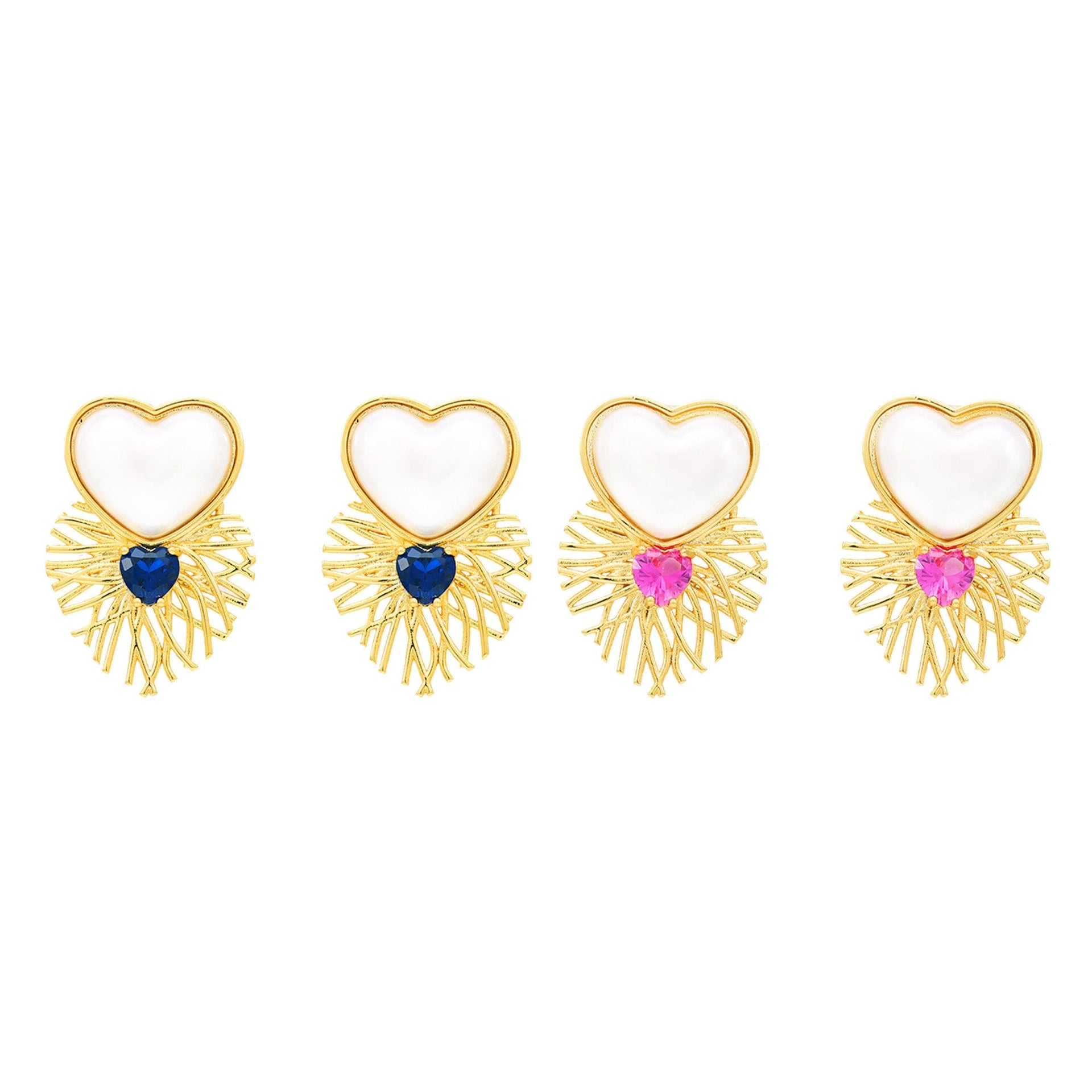 Pedra: madre pérola em formato de coração e vidro lapidadp formato de coração azul ou rosa