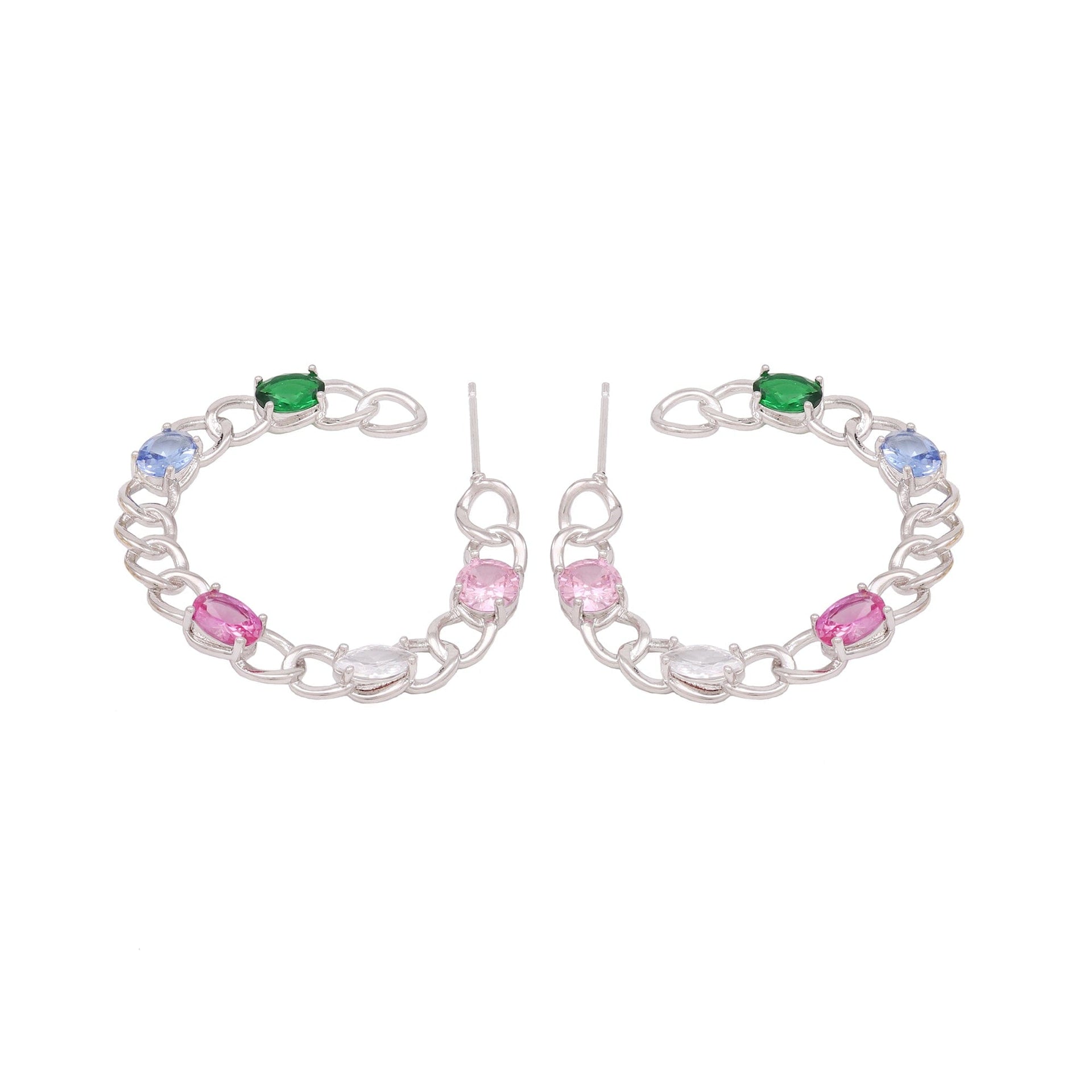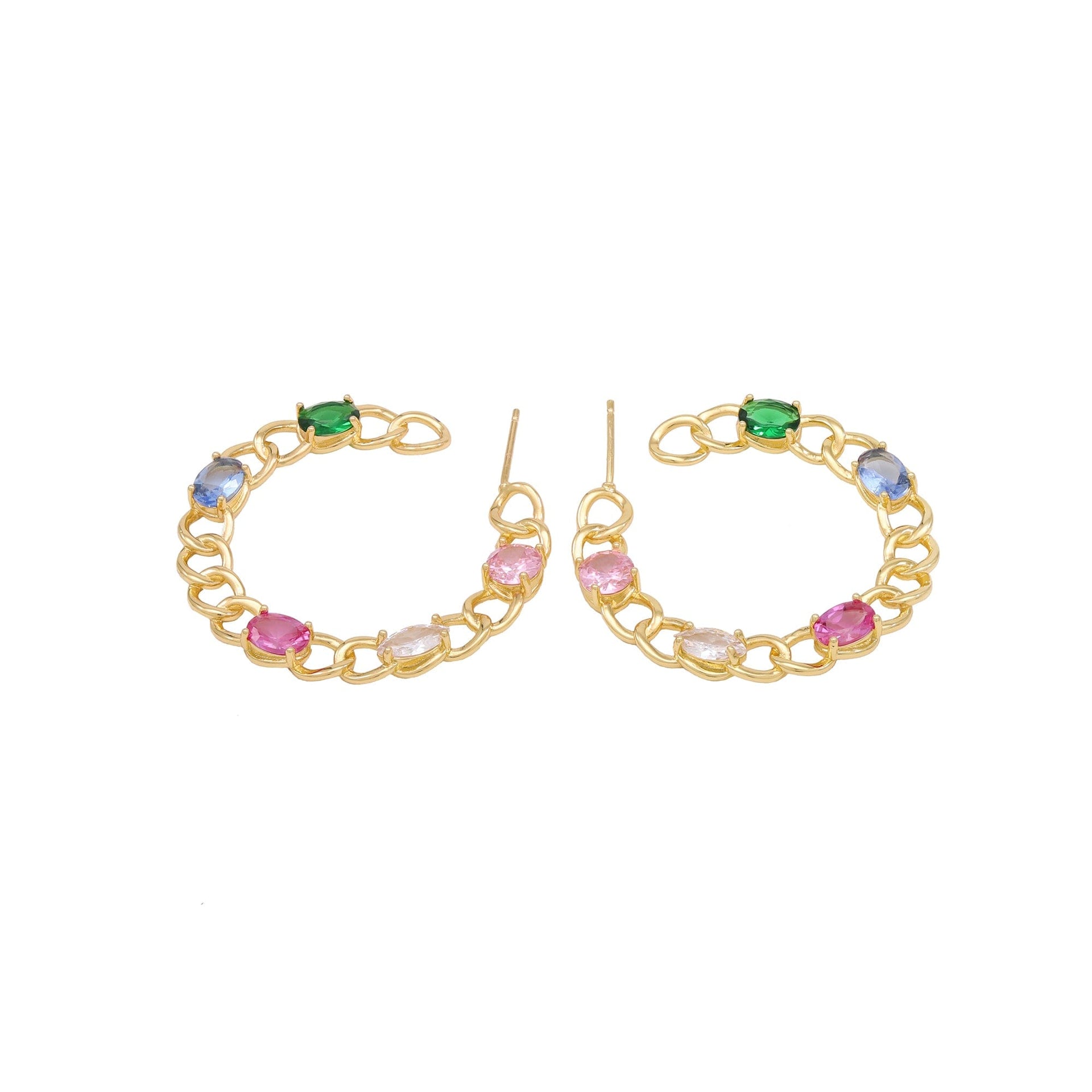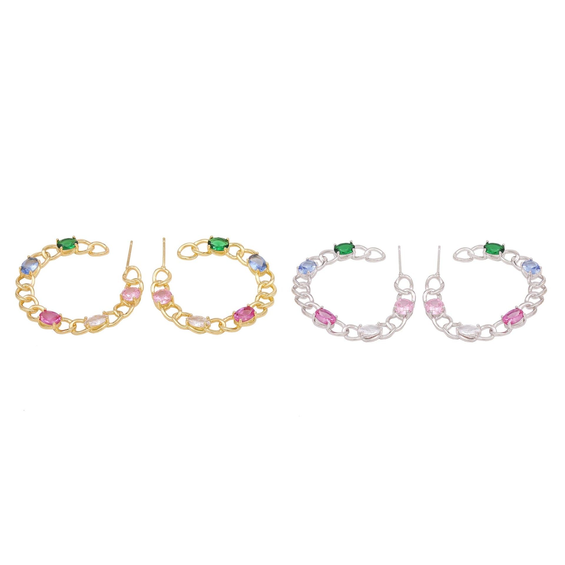 Brinco em latão de alta fusão cravejado manualmente com zircônia 5A Premium, nas opções de banho Ouro 18k, Ródio branco ou Bruto.