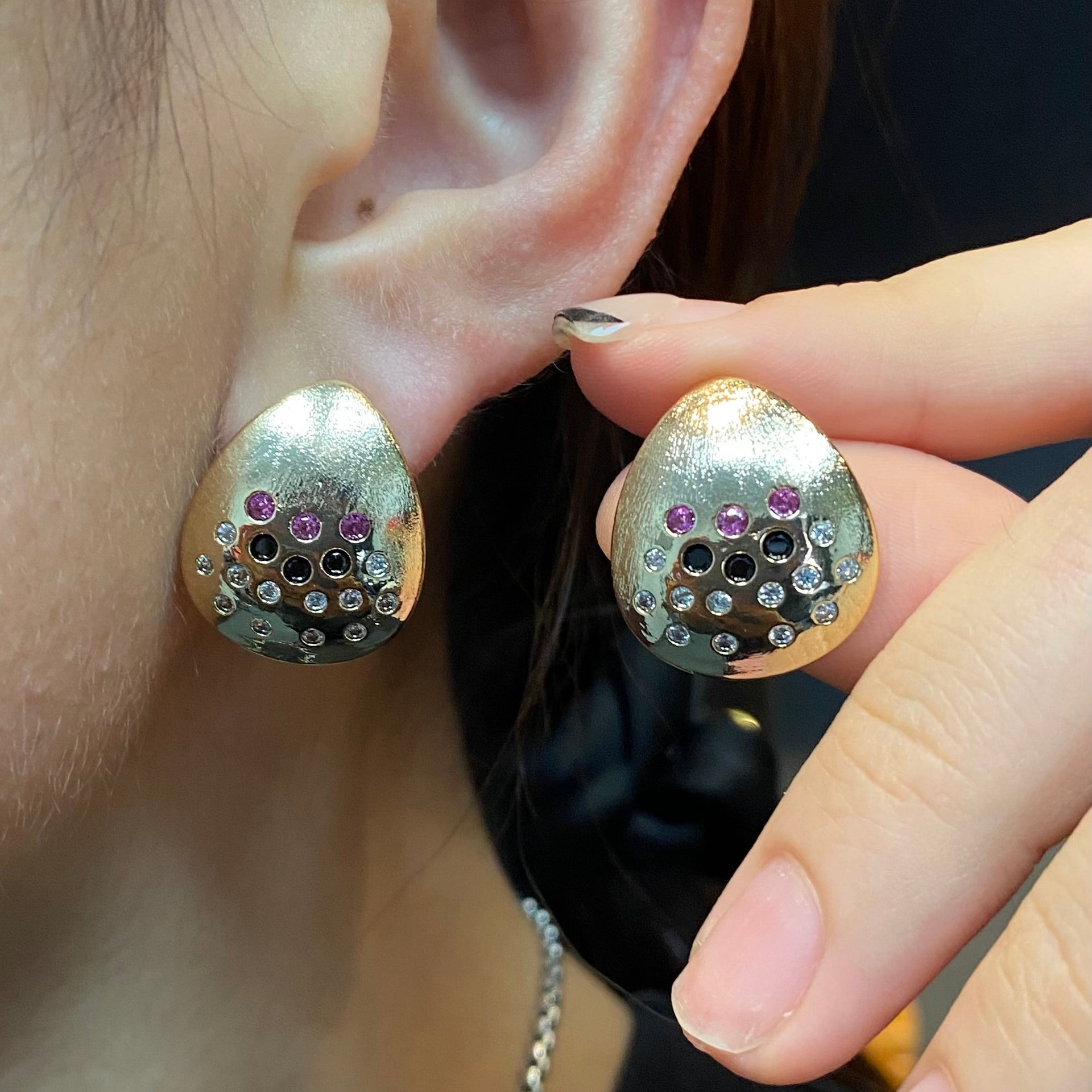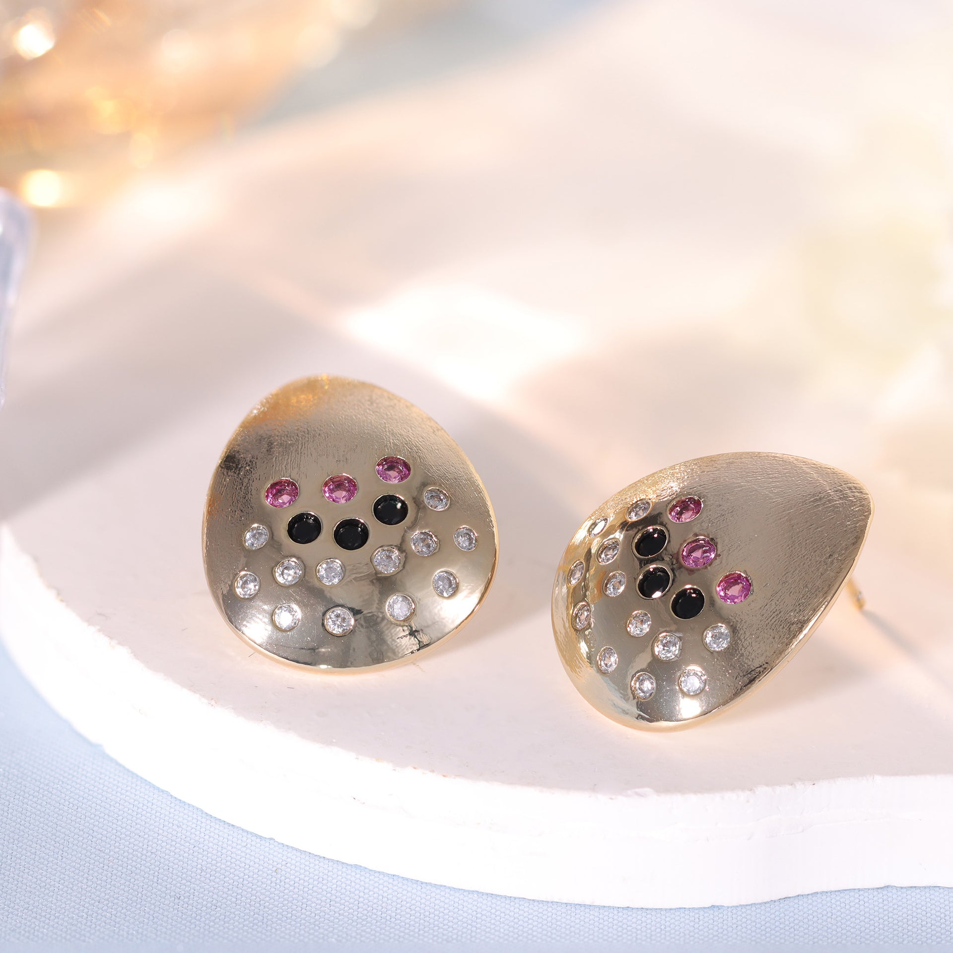 Argola em latão de alta fusão cravejado manualmente com micro zircônia 5A Premium, nas opções de banho Ouro 18k.