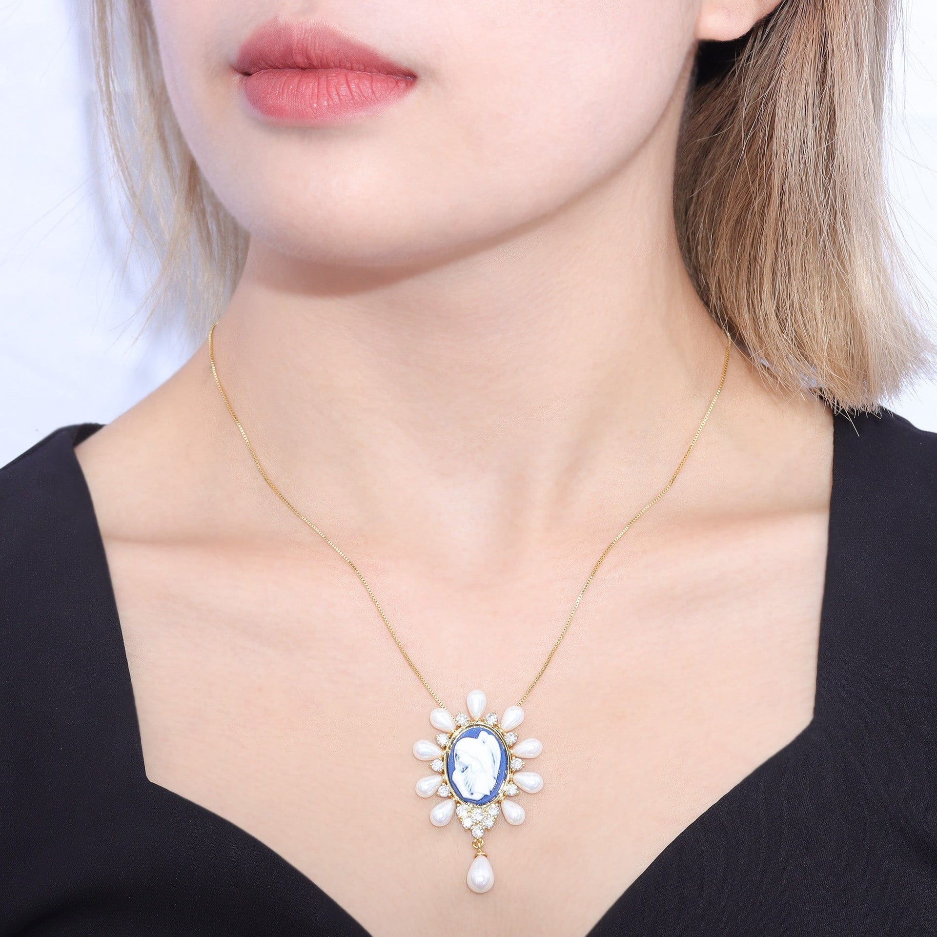 Colar em latão de alta fusão cravejado manualmente com micro zircônia 5A e madrepérola, nas opções de banho Ouro 18k, Ródio branco ou Bruto.