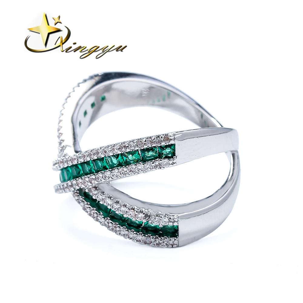 Anel de alta fusão cravejado manualmente com micro zircônias 5A e vidro lapidado, nas opções de banho Ouro 18k, Ródio