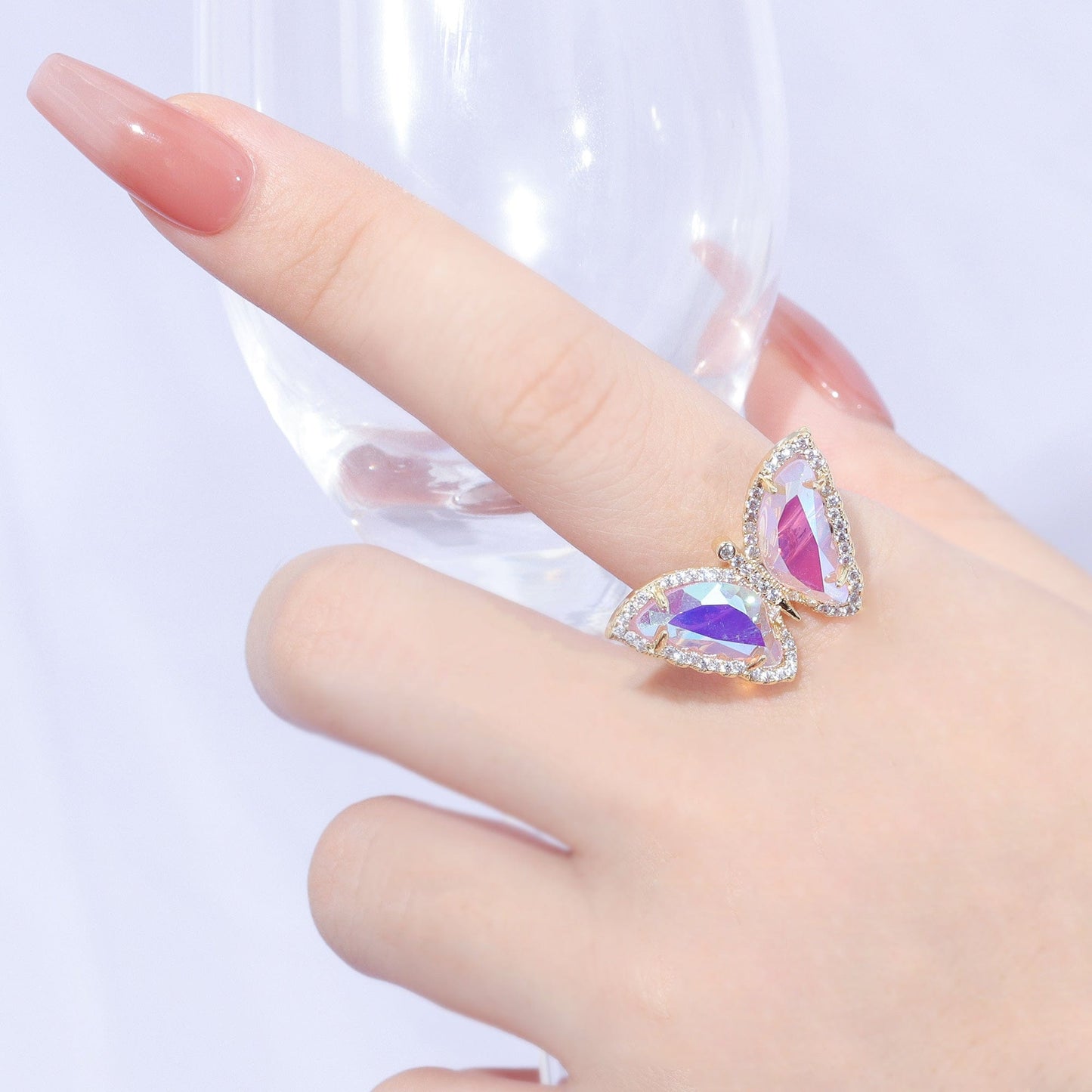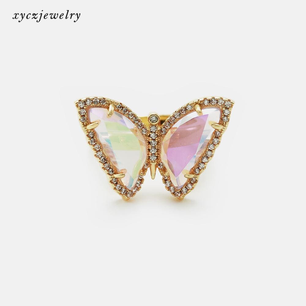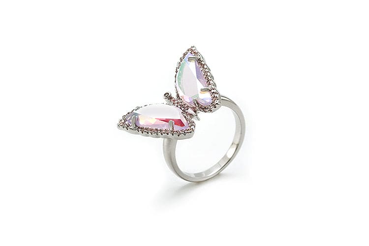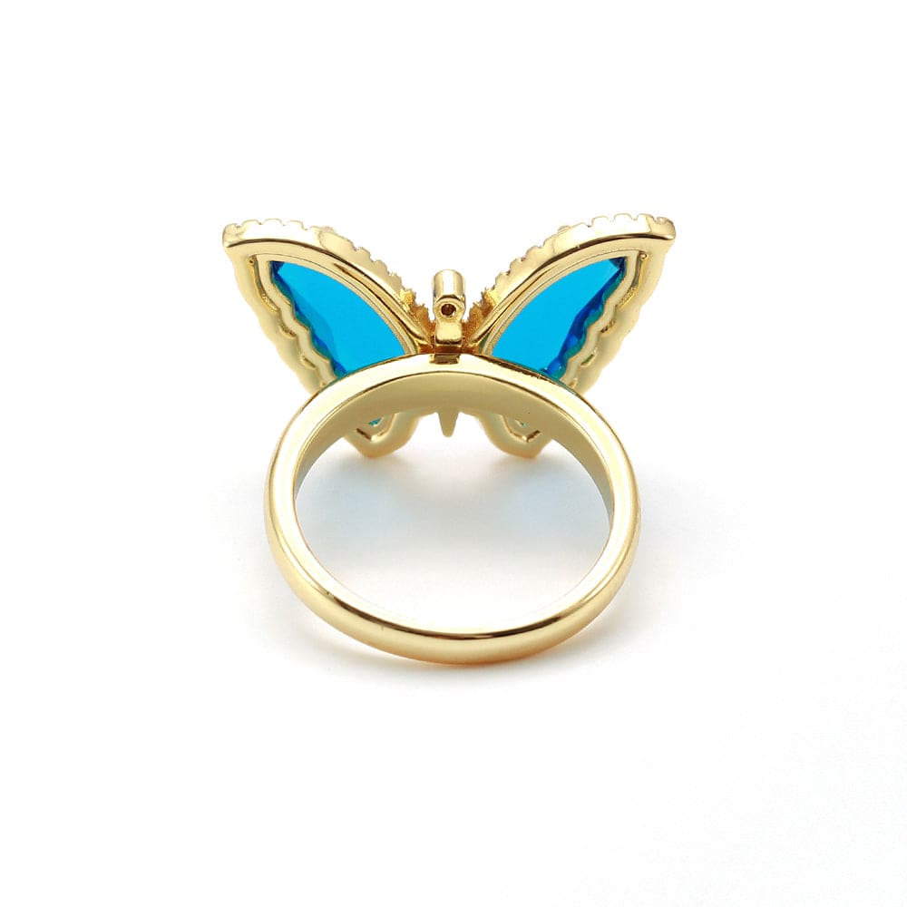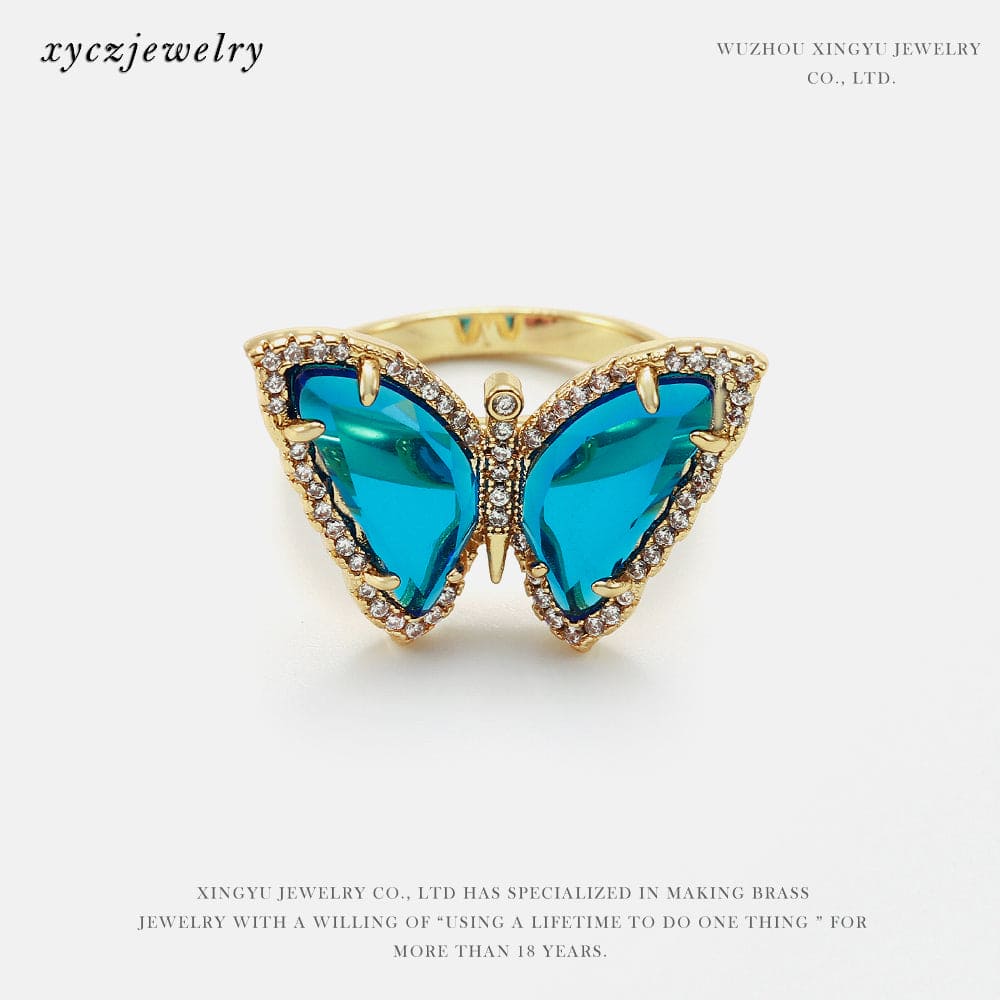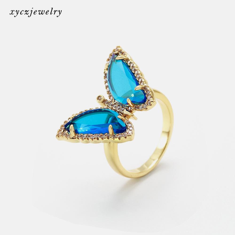 Anel Borboleta com cristal azul e zircônias no atacado