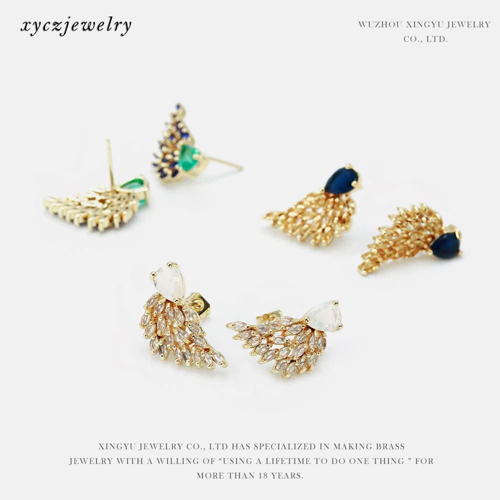 Brinco em latão de alta fusão cravejado manualmente com vidro lapidado, nas opções de banho Ouro 18k, Ródio branco ou Bruto.