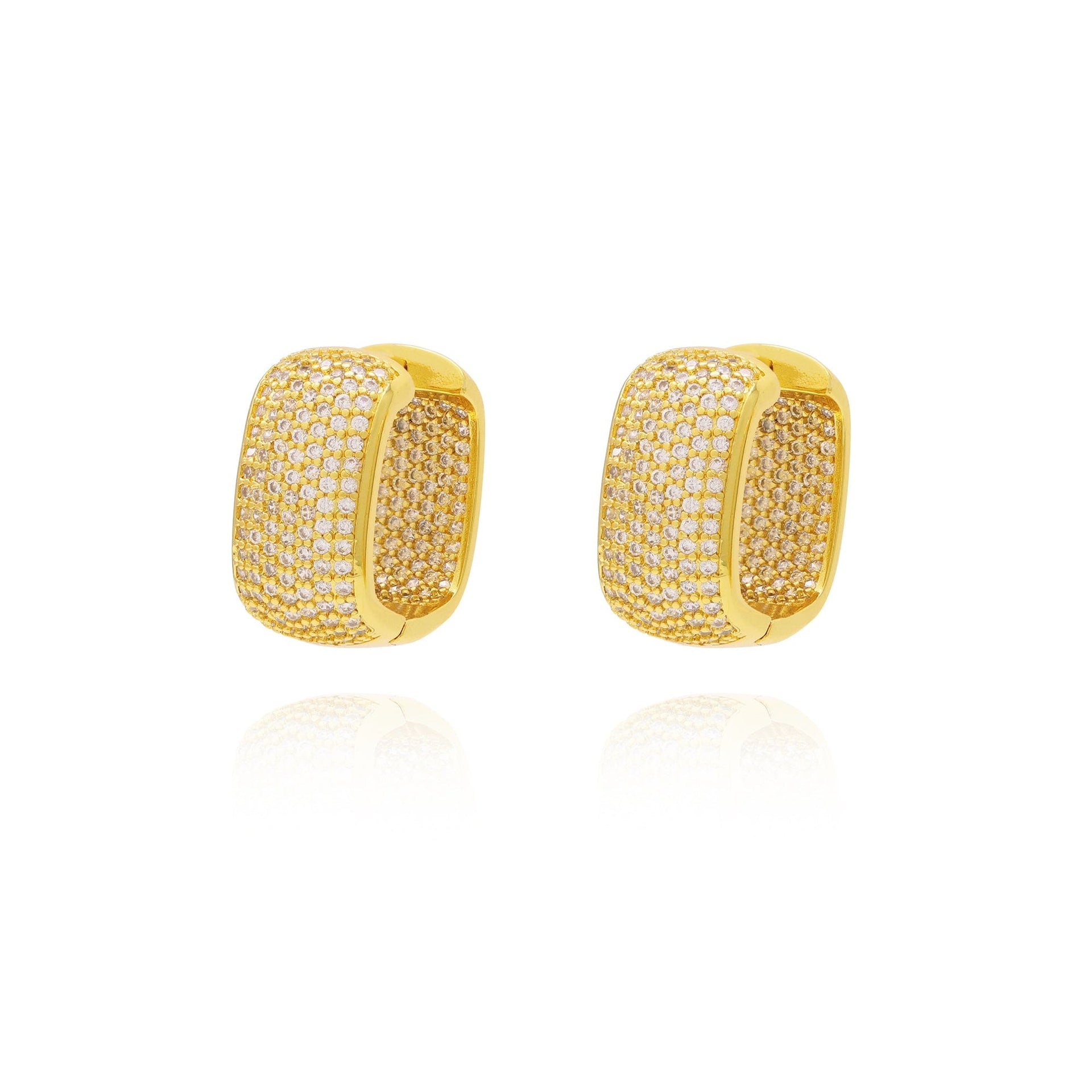 Argola em latão de alta fusão cravejado manualmente com micro zircônia 5A Premium, nas opções de banho Ouro 18k, Ródio branco ou Bruto.