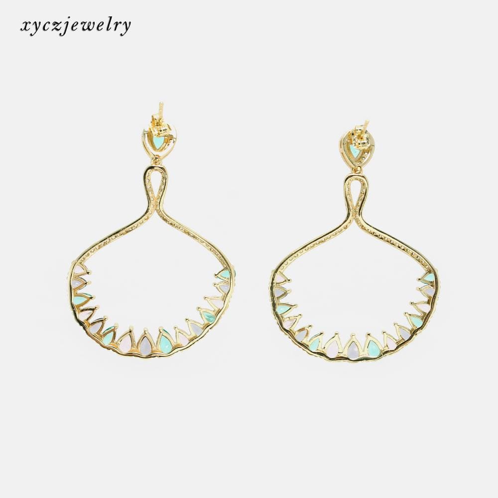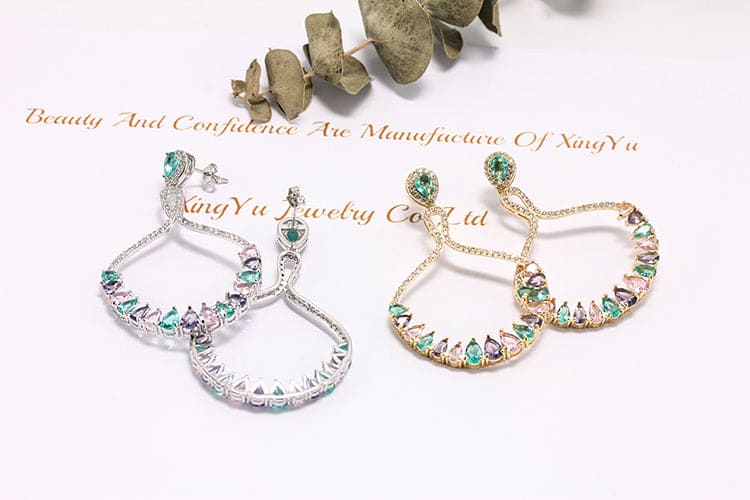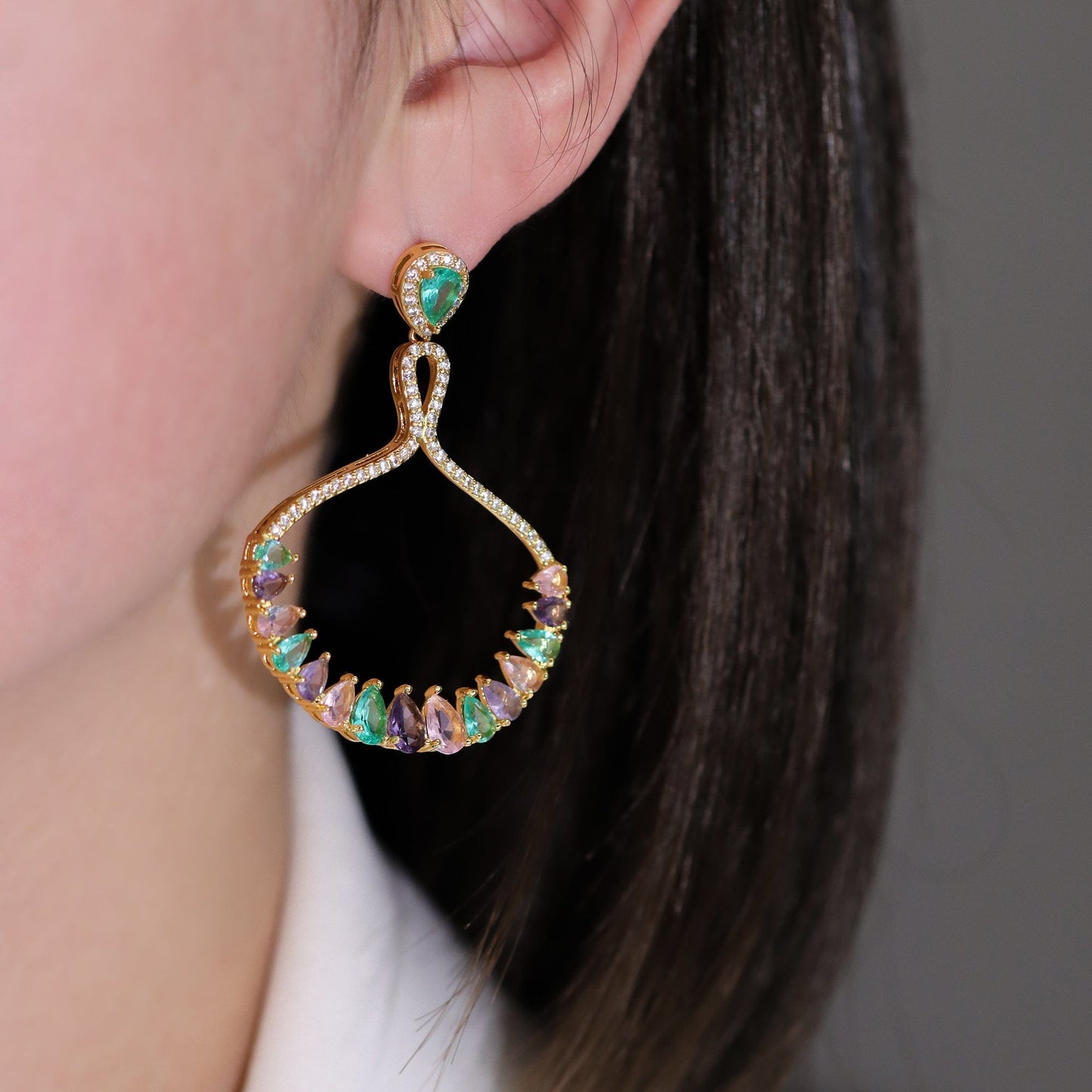 Brinco em latão de alta fusão cravejado manualmente com micro zircônia 5A e vidro lapidado, nas opções de banho Ouro 18k, Ródio branco ou Bruto.