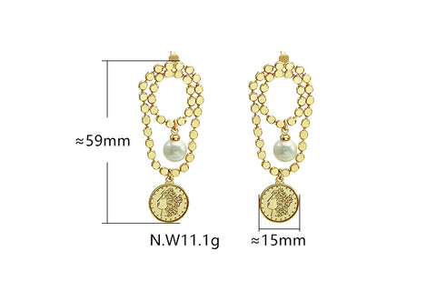 Brinco em latão de alta fusão polido manualmente com pérola shell, nas opções de banho Ouro 18k, Ródio branco ou Bruto