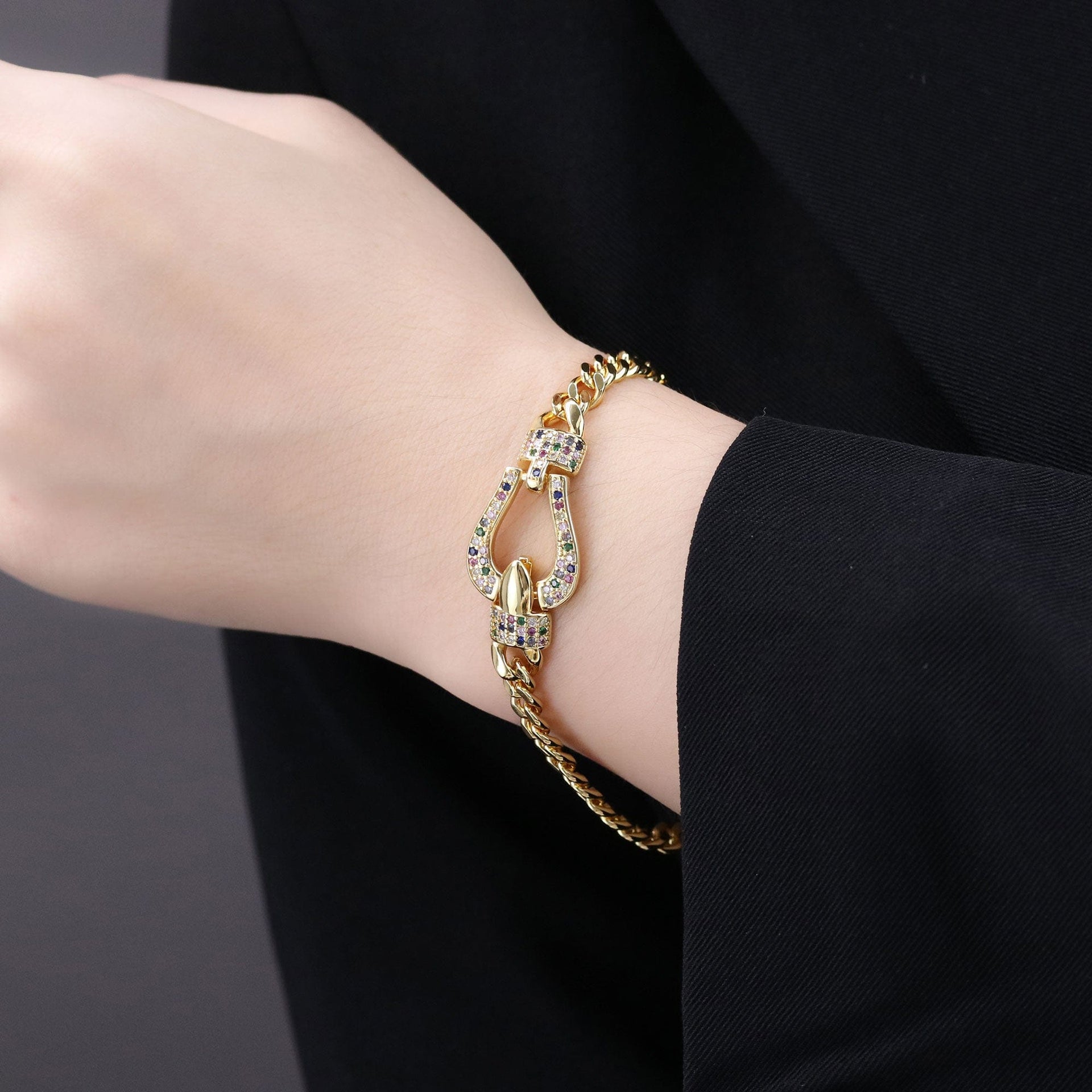 Pulseira em latão de alta fusão cravejado manualmente com micro zircônia 5A Premium, nas opções de banho Ouro 18k, Ródio branco ou Bruto.