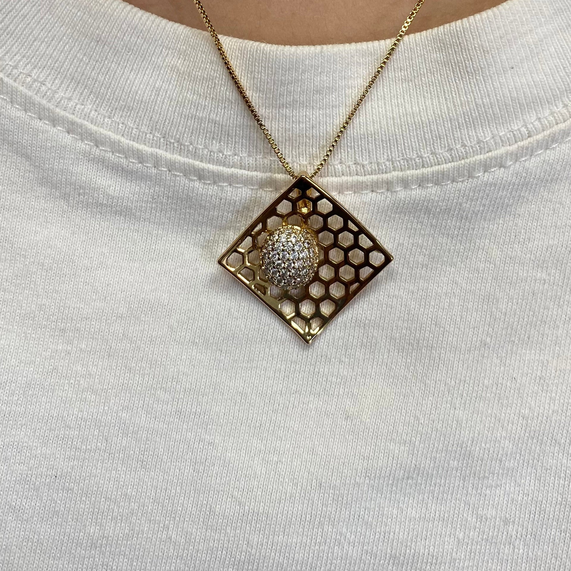 Colar em latão de alta fusão cravejado manualmente com micro zircônia 5A Premium, nas opções de banho Ouro Brasileiro