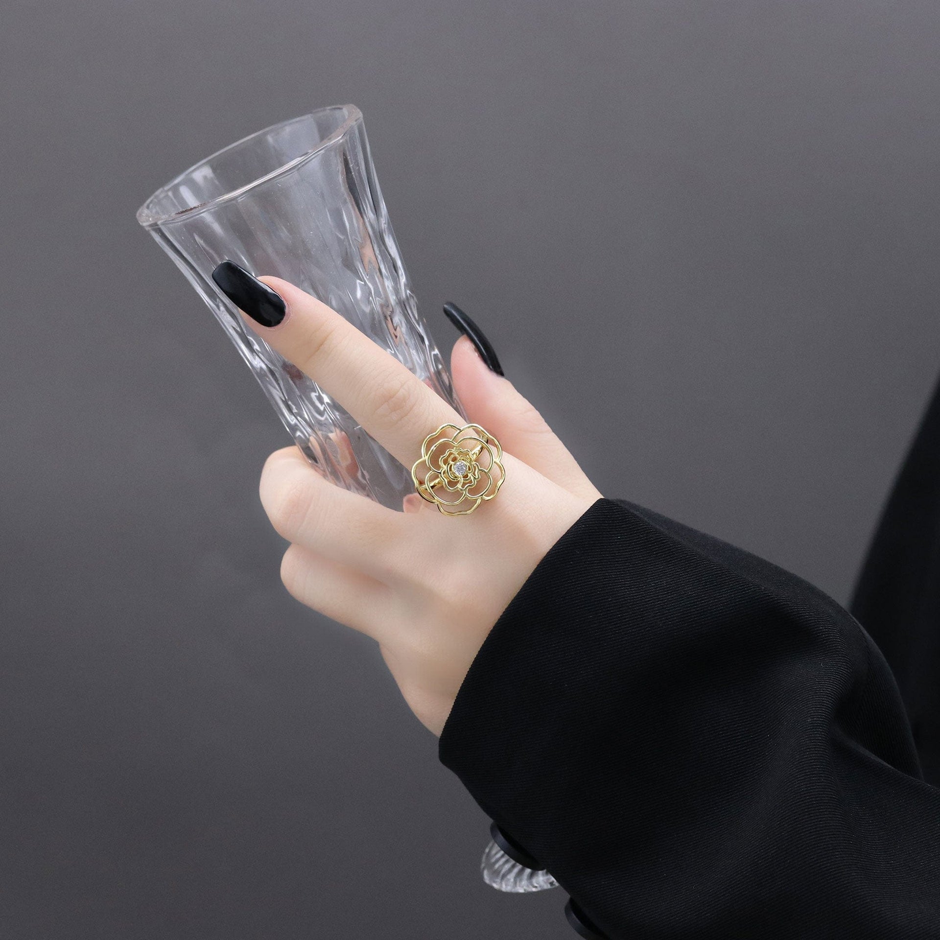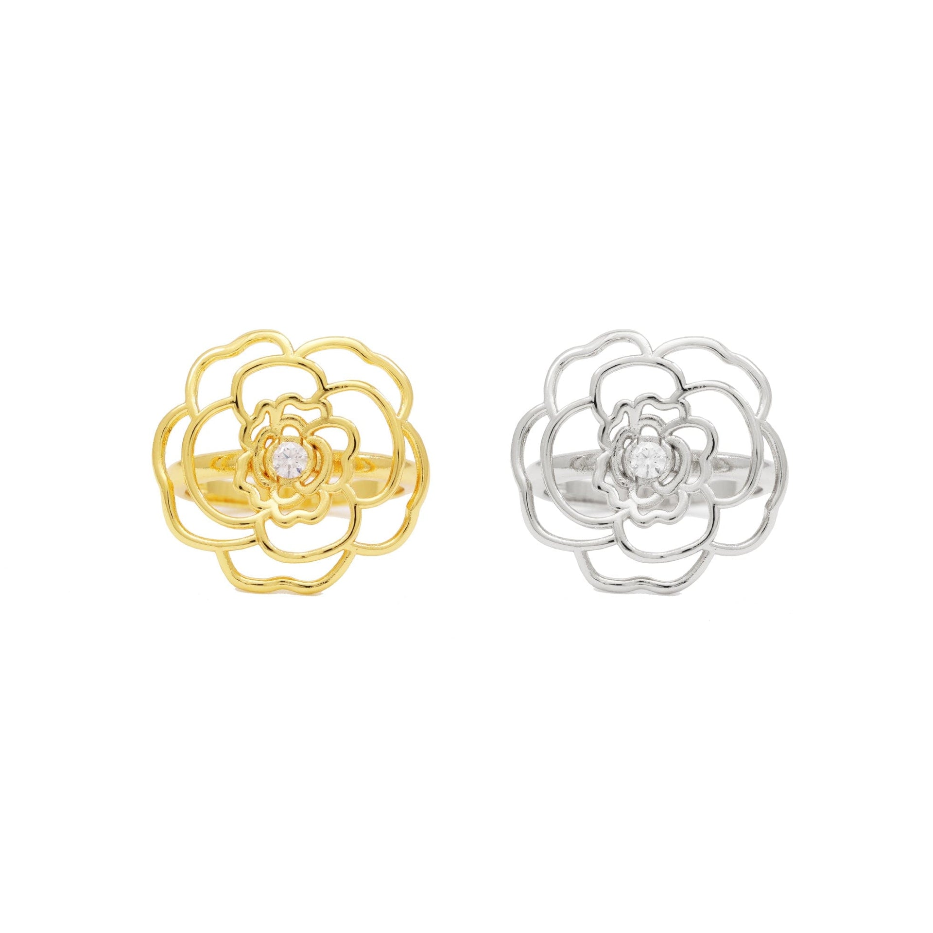 Anel em latão de alta fusão cravejado manualmente com zircônia 5A Premium, nas opções de banho Ouro 18k, Ródio branco ou Bruto.