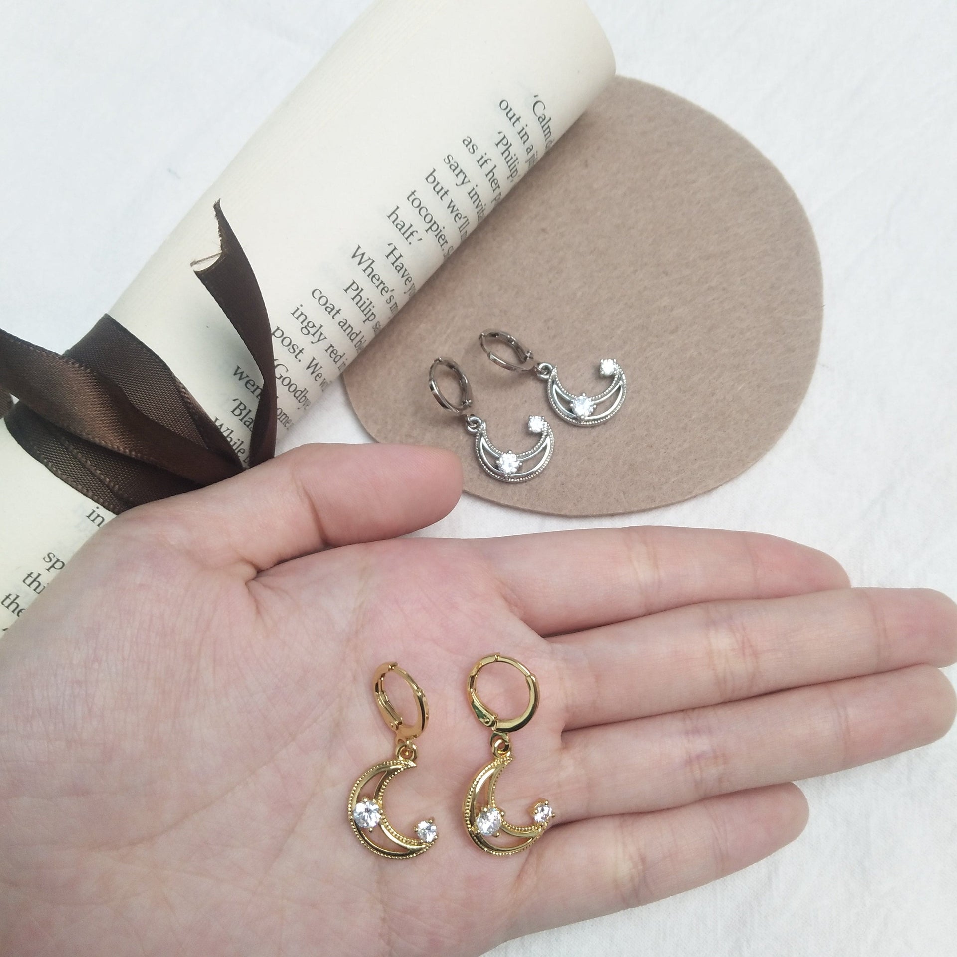 Brinco em latão de alta fusão cravejado manualmente com vidro lapidado, nas opções de banho Ouro 18k, Ródio branco ou Bruto.