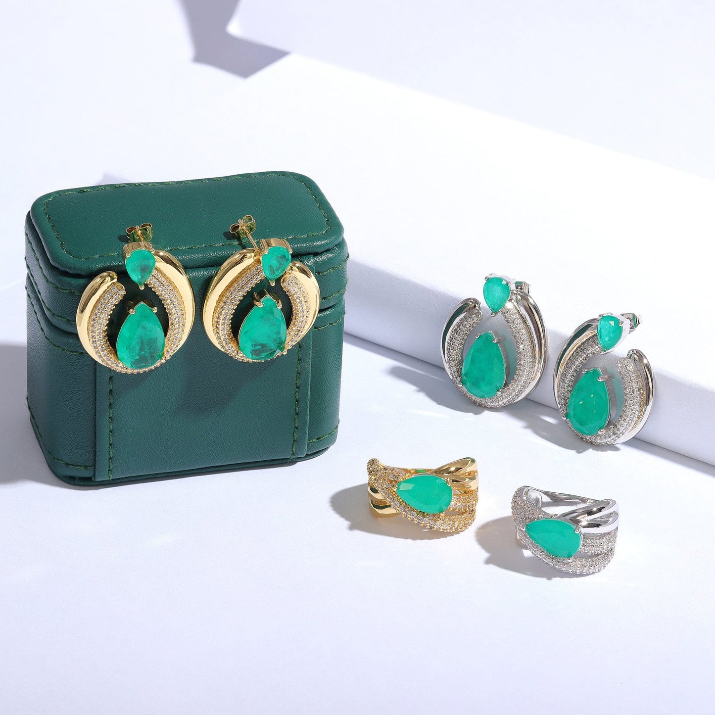 Material: Banho de Ouro 18k/Cristal+ Fusion Verde 黄金电镀-白+绿