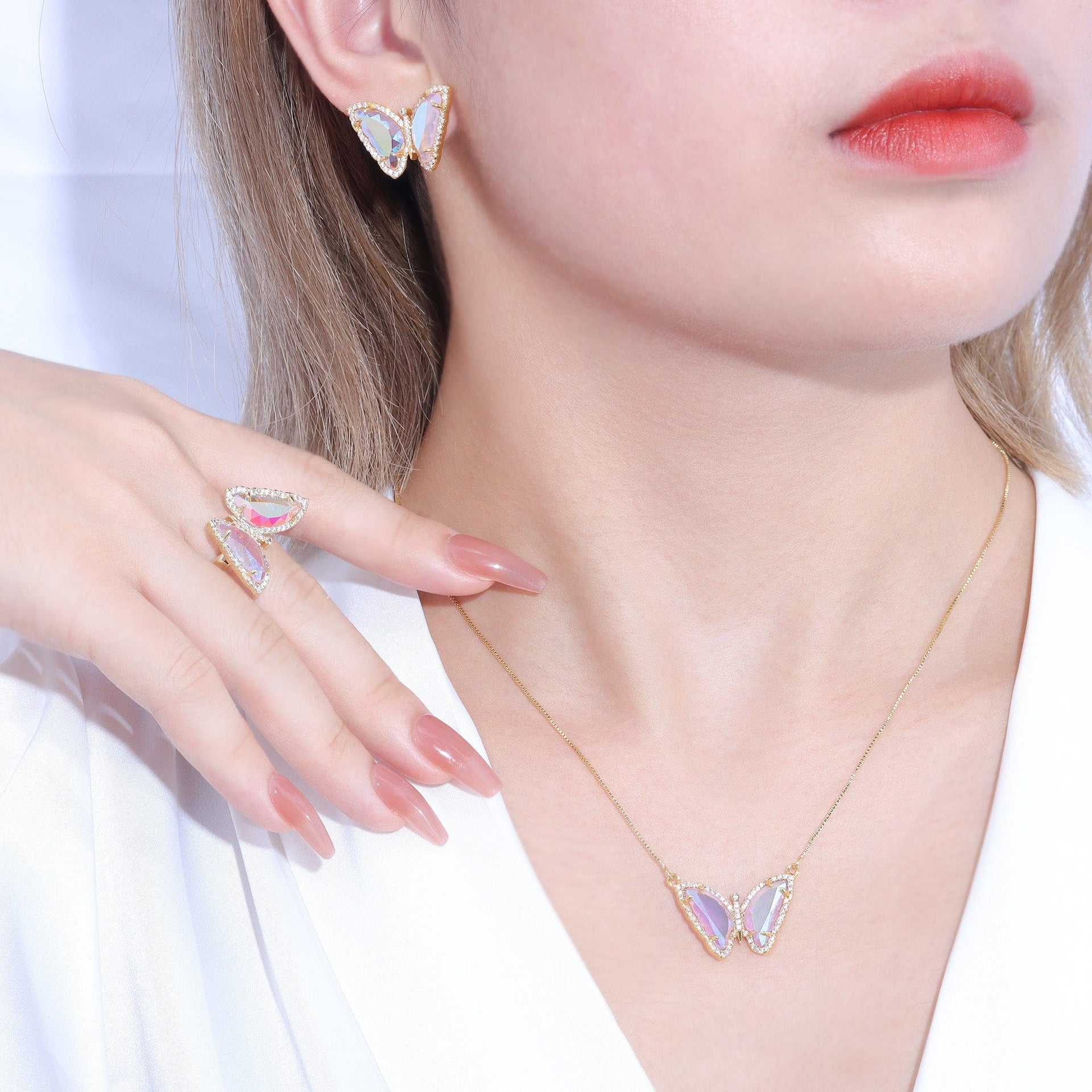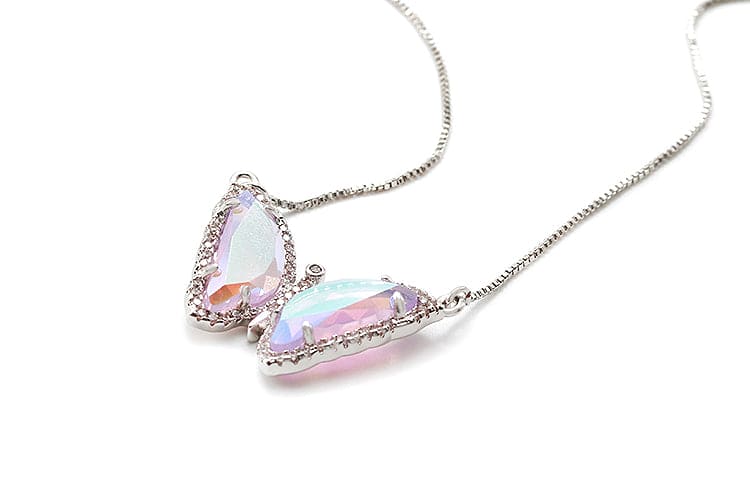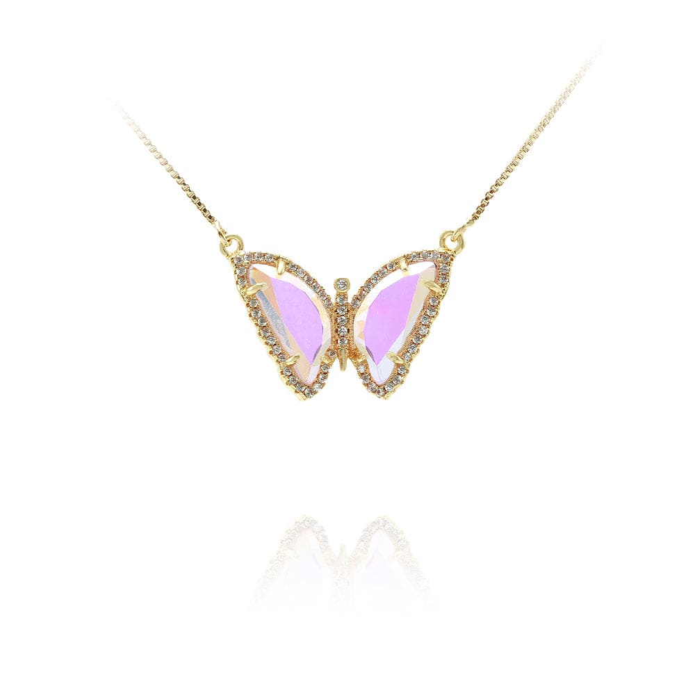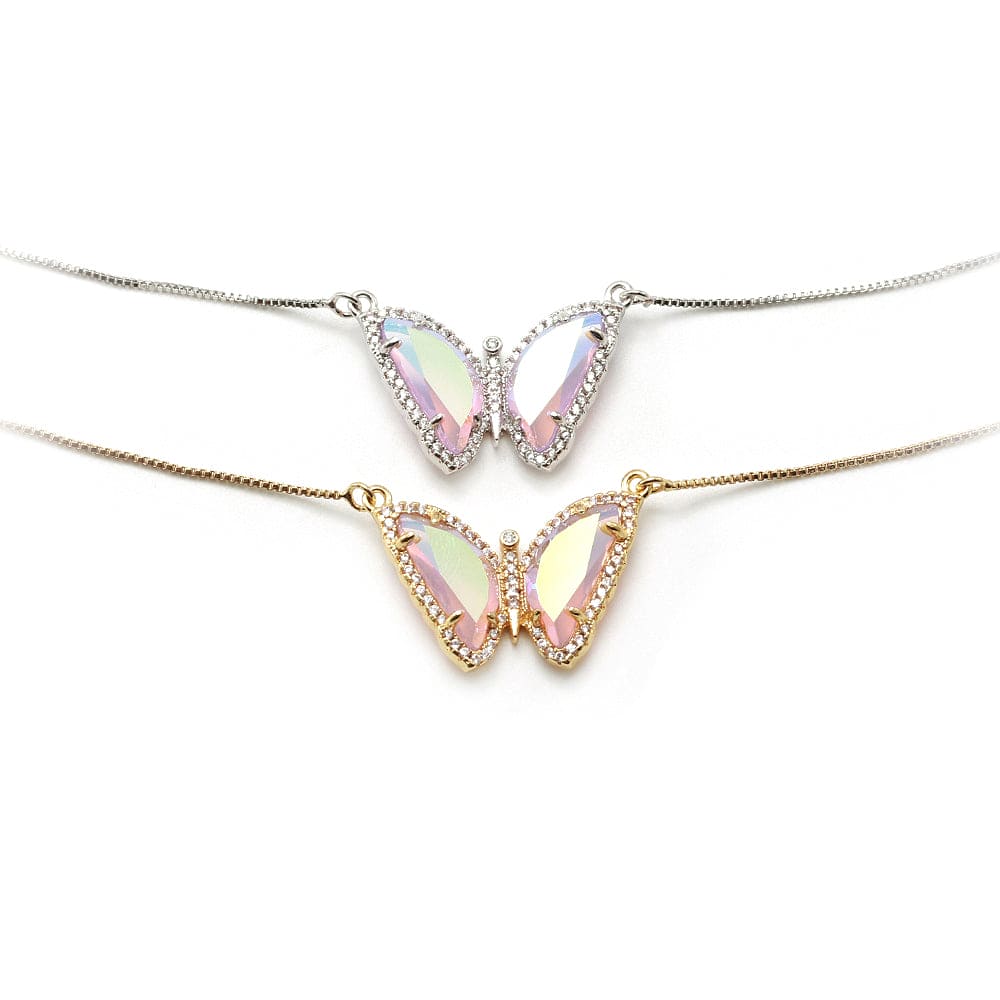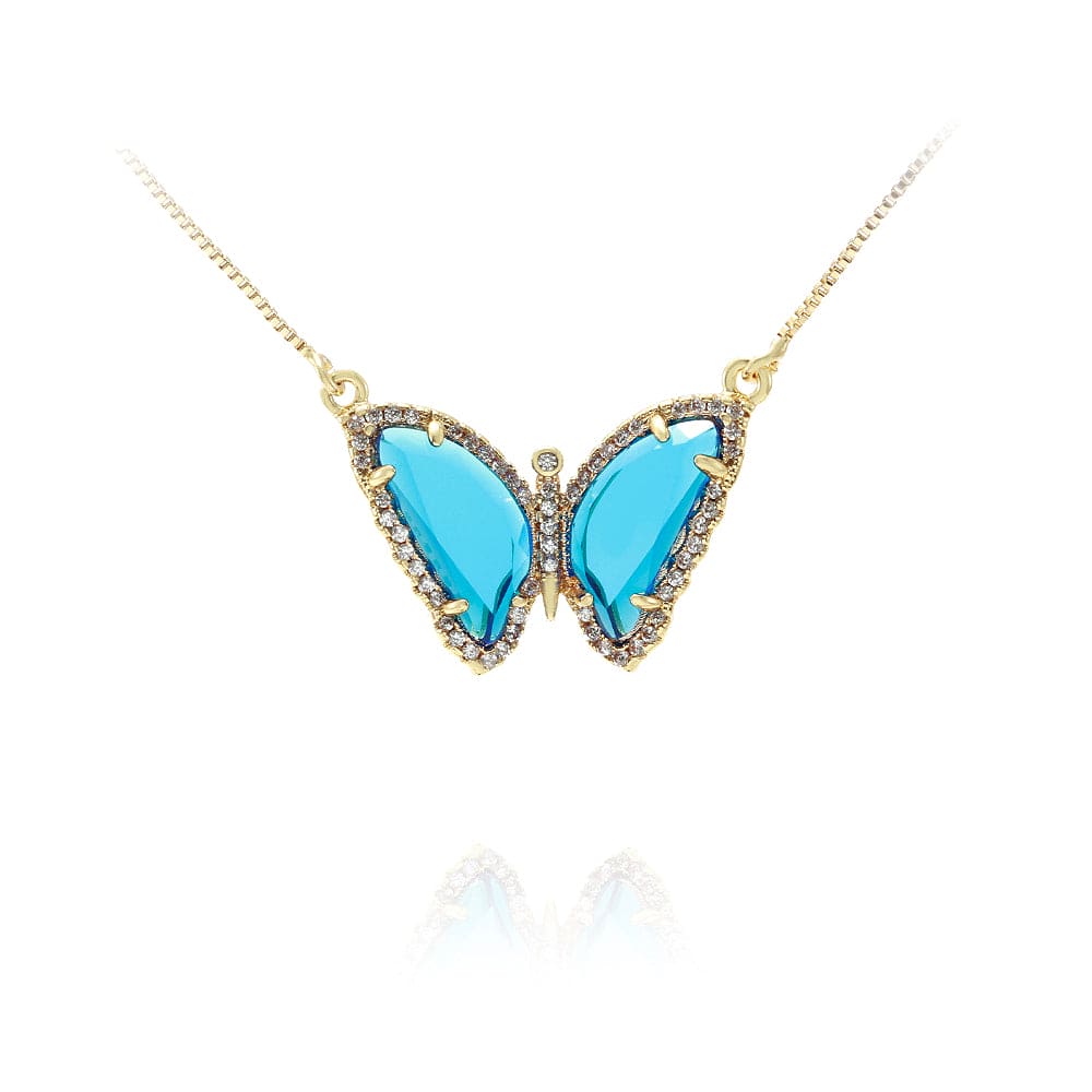 Pedra: Micro zircônia cristal e vidro lapidado formato de borboleta azul ou rosa