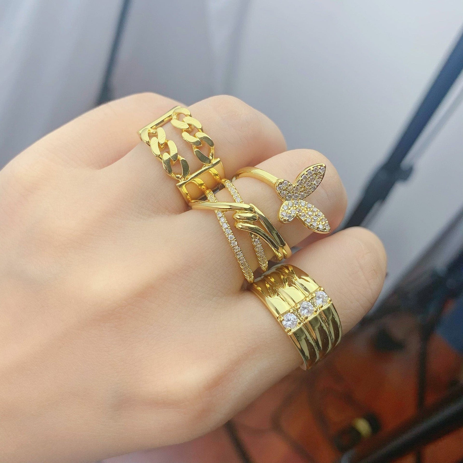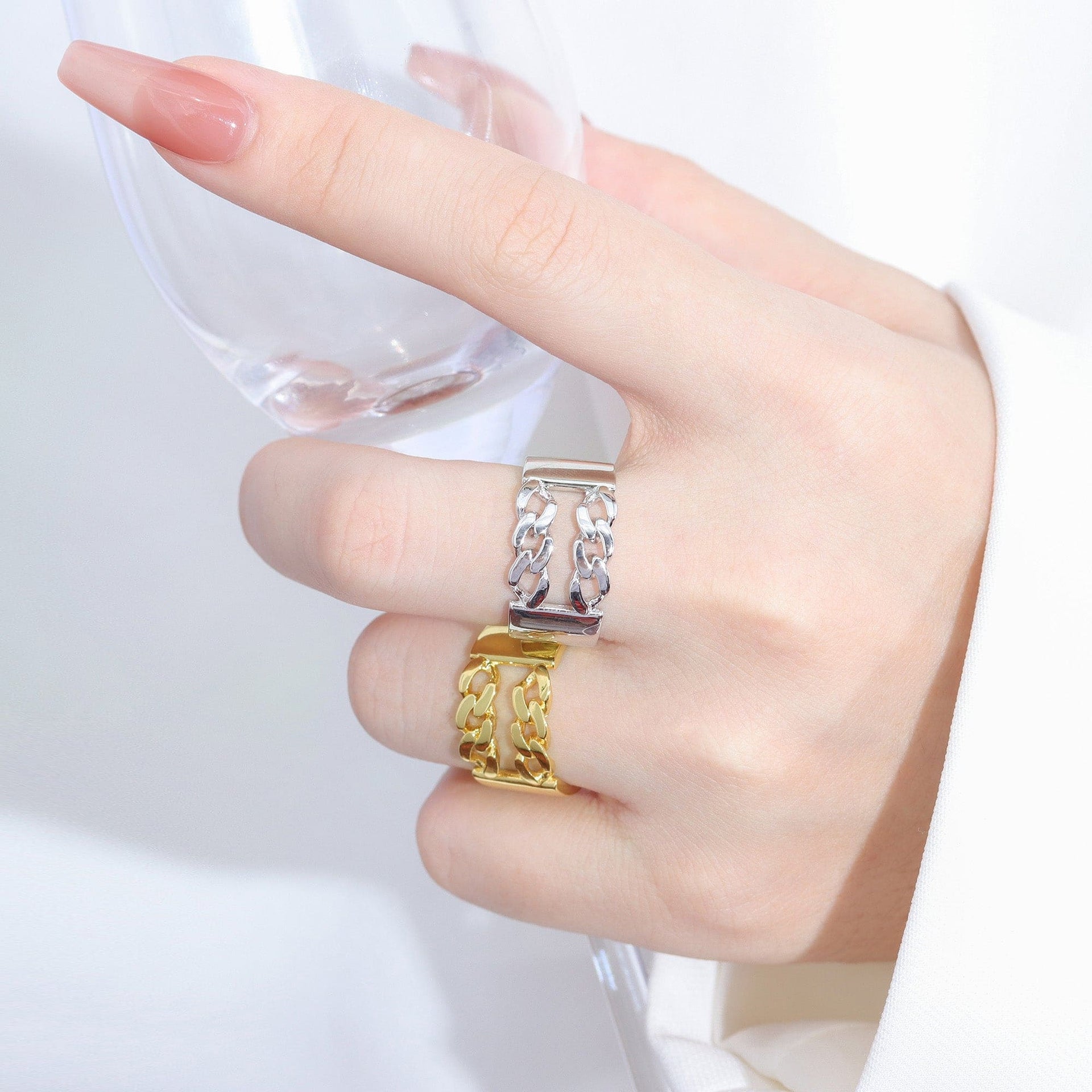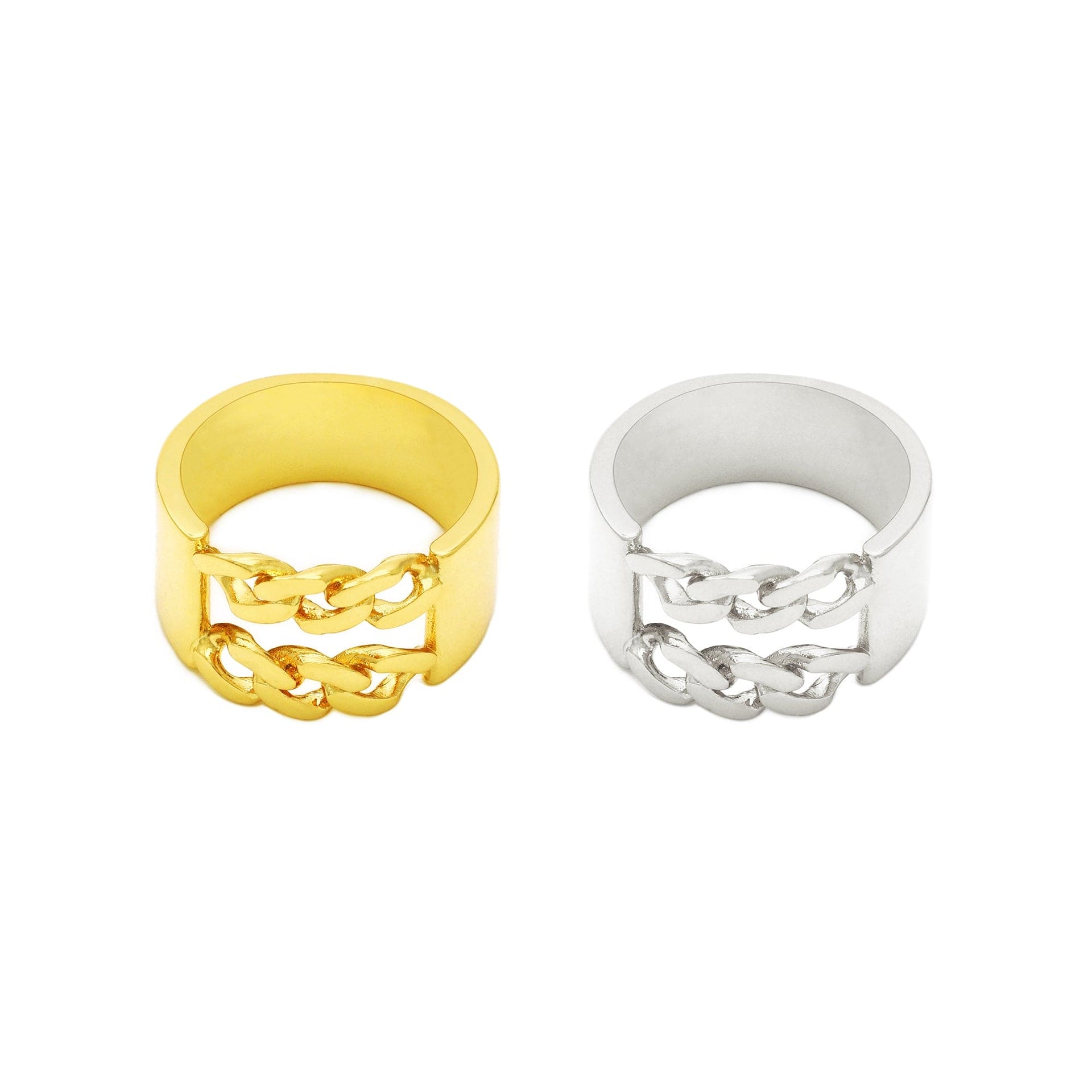 Compre anel com corrente dupla estilo grumet no atacado para revenda com banho de Ouro 18K e garantia de 1 ano direto da fábrica. Tudo com a Xingyu, a marca de semijoias para o atacadista que mais cresce no mercado.