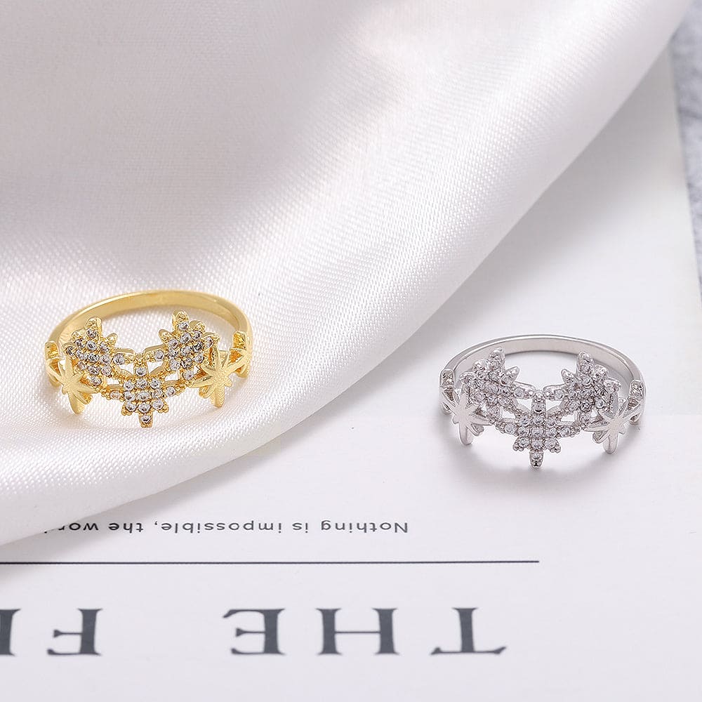 Compre Anel três estrelas cravejadas no atacado com a melhor pedra de zircônia do mercado, a zircônia 5A, banho de Ouro 18K e garantia de 1 ano direto da fábrica. Tudo com a Xingyu, a marca de semijoias para o atacadista que mais cresce no mercado.
