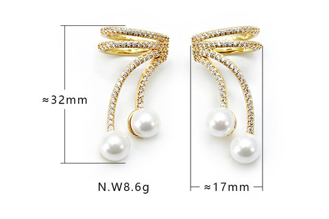Piercing Fake em latão de alta fusão cravejado manualmente com micro zircônia 5A Premium e perola shell, nas opções de banho Ouro 18k, Ródio branco ou Bruto.