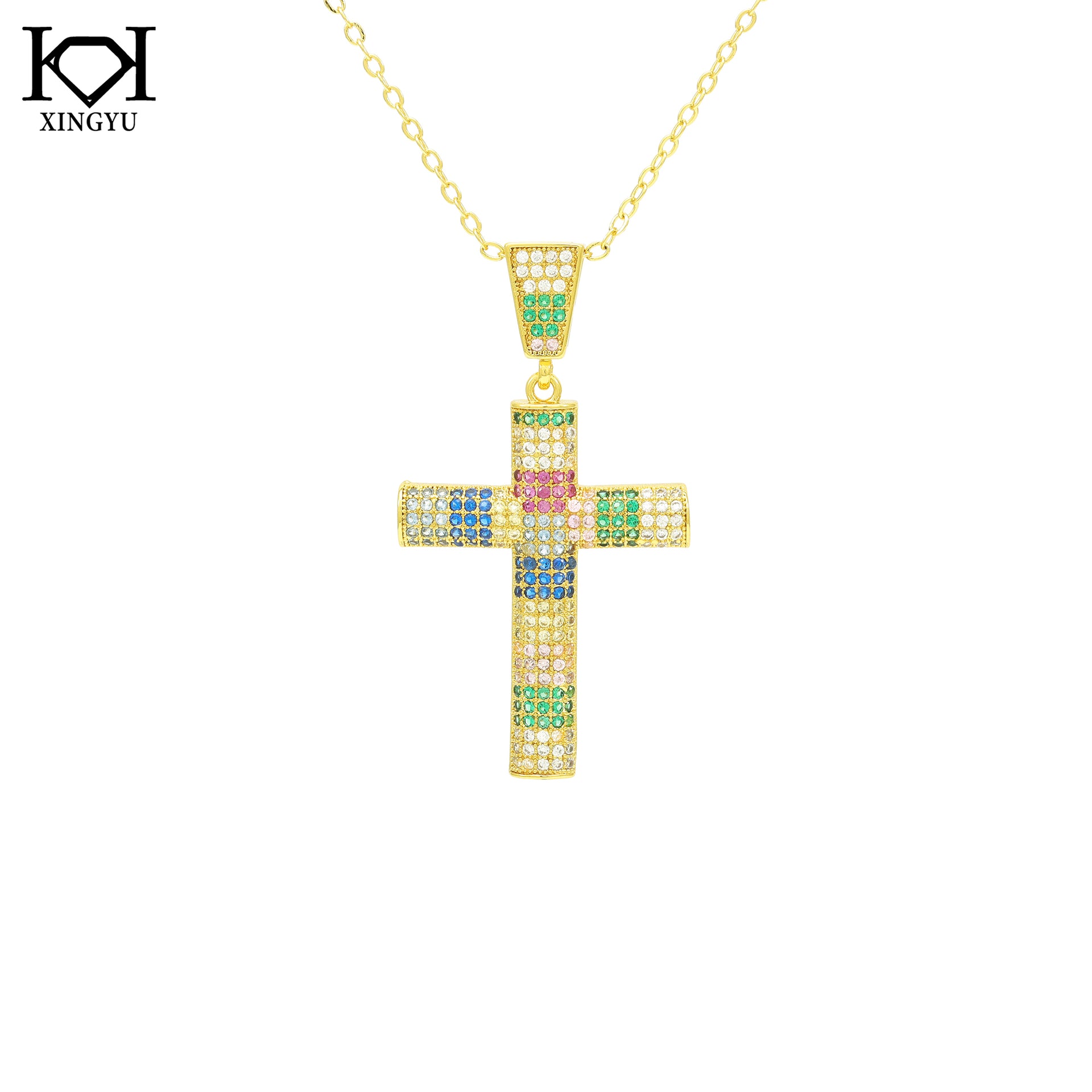 - Colar Cruz Cravejada Colorida XYN101124