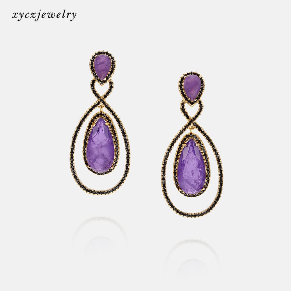 Brinco em latão de alta fusão cravejado manualmente com micro zircônia 5A premium e pedra fusion natural, nas opções de banho Ouro 18k, Ródio branco ou Bruto.