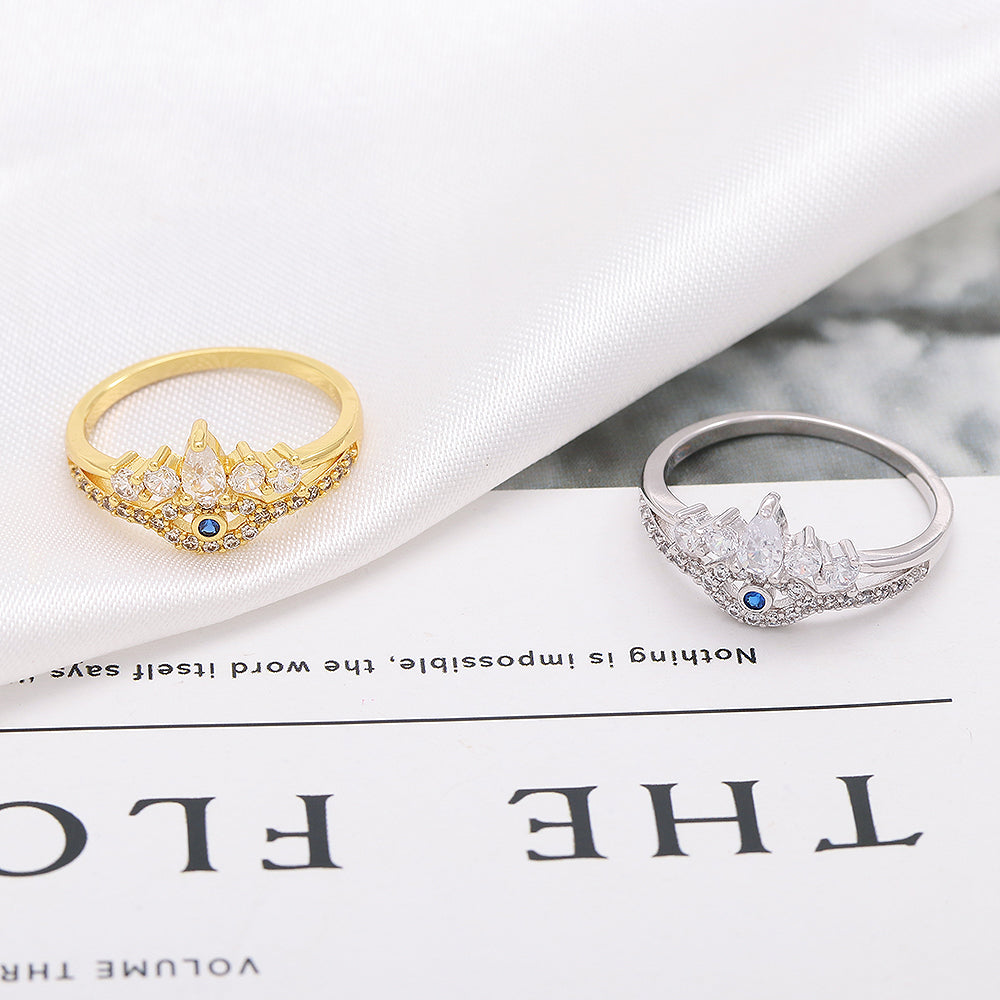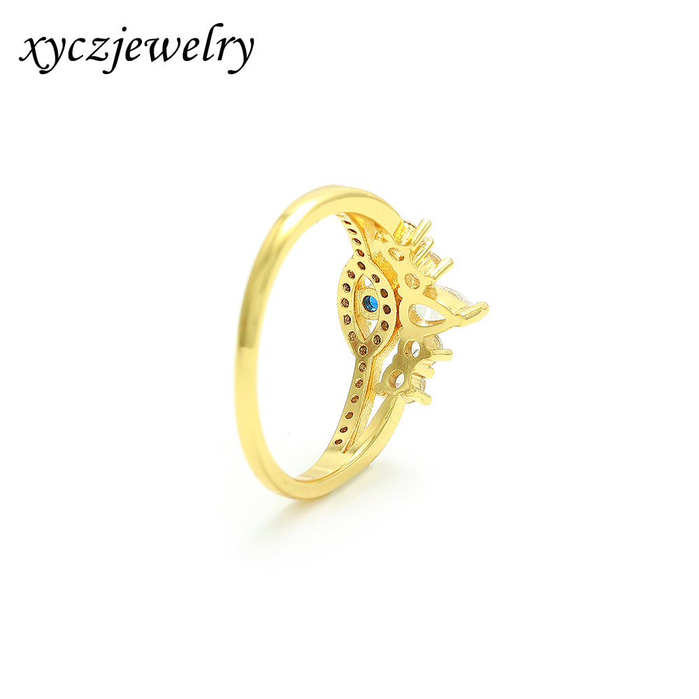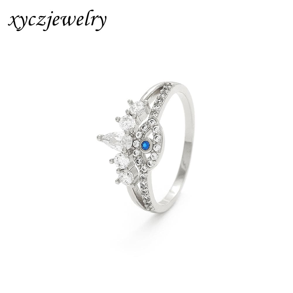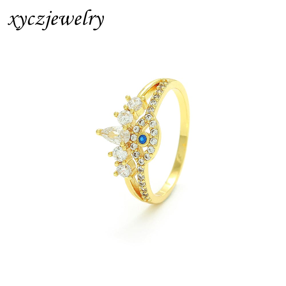 Compre anel de olho grego cravejado com zircônias cristais e azuis para revenda com a melhor pedra de zircônia do mercado, a zircônia 5A, banho de Ouro 18K e garantia de 1 ano direto da fábrica. Tudo com a Xingyu, a marca de semijoias para o atacadista que mais cresce no mercado.