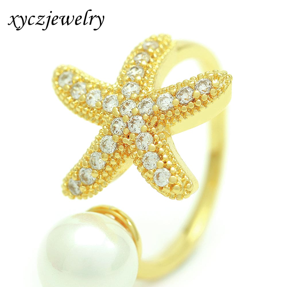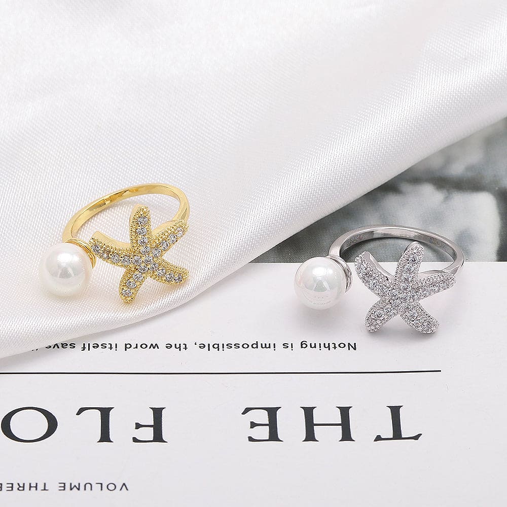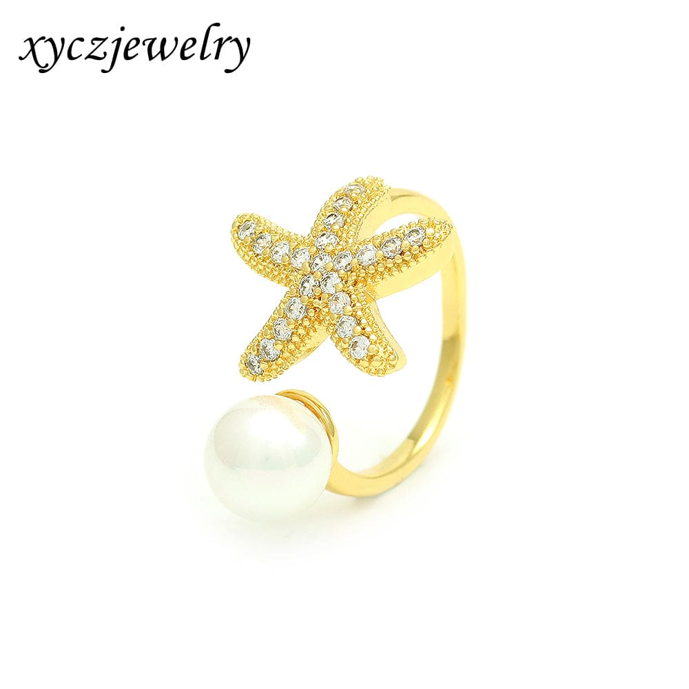 Compre Anel estrela do mar e pérola no atacado para revenda com a melhor pedra de zircônia do mercado, a zircônia 5A, banho de Ouro 18K e garantia de 1 ano direto da fábrica. Tudo com a Xingyu, a marca de semijoias para o atacadista que mais cresce no mercado.