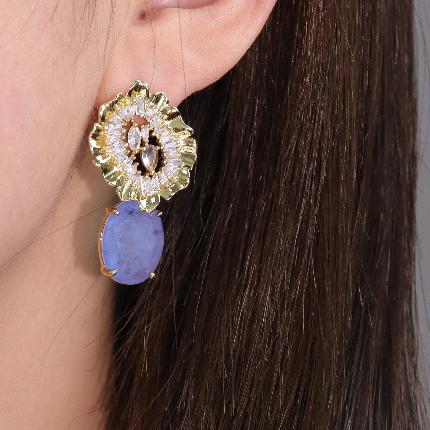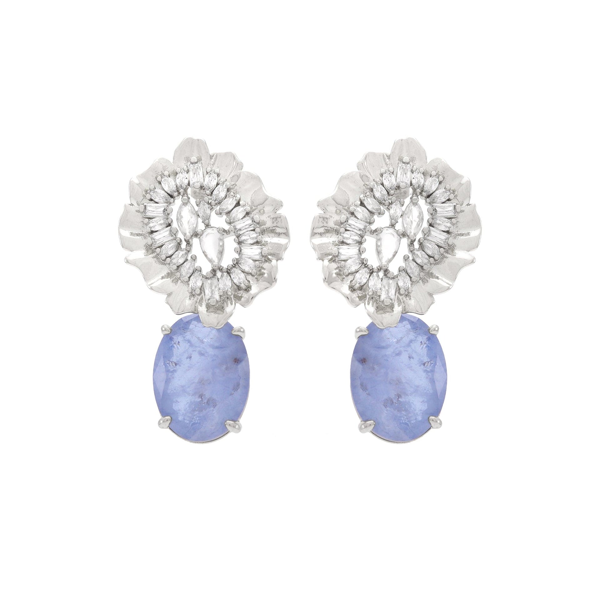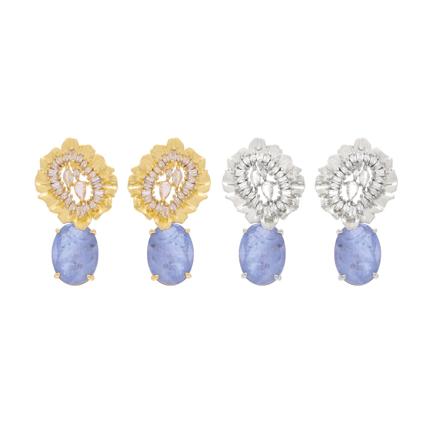 Brinco em latão de alta fusão cravejado manualmente com zircônia 5A Premium e fusion, nas opções de banho Ouro 18k, Ródio branco ou Bruto.