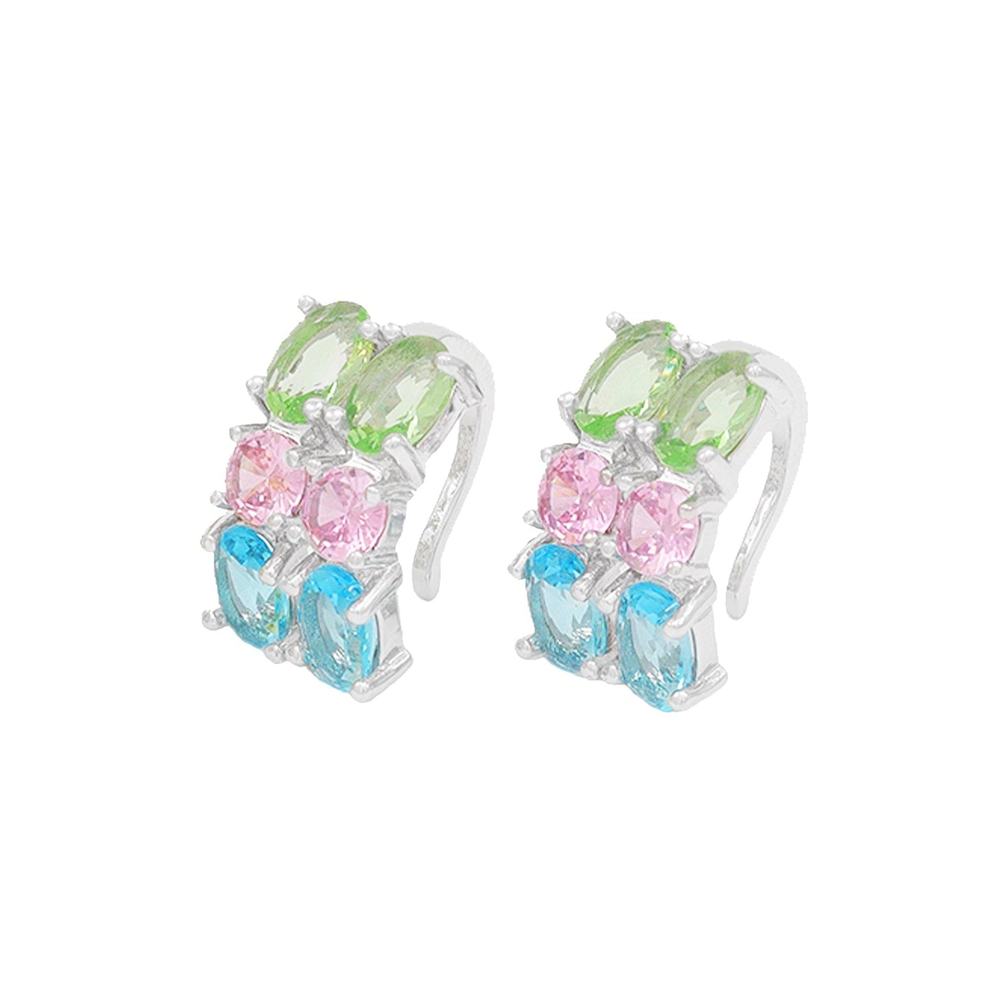 Brinco em latão de alta fusão cravejado manualmente com zircônia 5A premium e vidro lapidado, nas opções de banho Ouro 18k, Ródio branco ou Bruto.