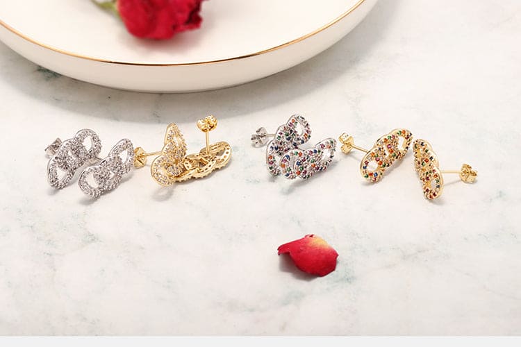 Brinco em latão de alta fusão cravejado manualmente com micro zircônia 5A Premium, nas opções de banho Ouro 18k, Ródio branco ou Bruto.