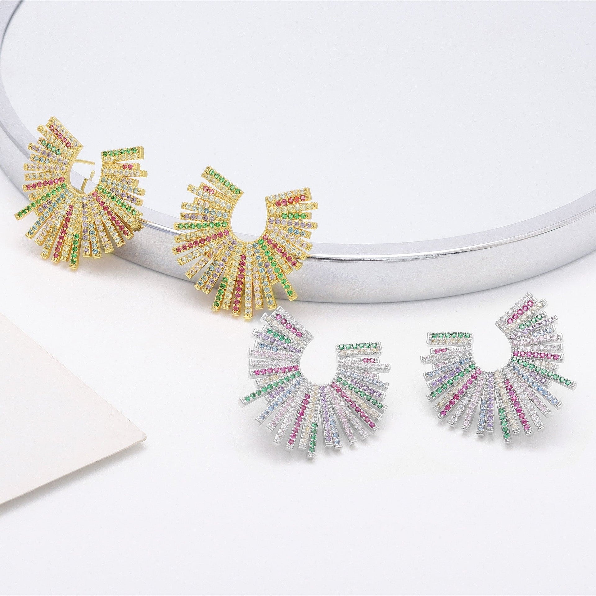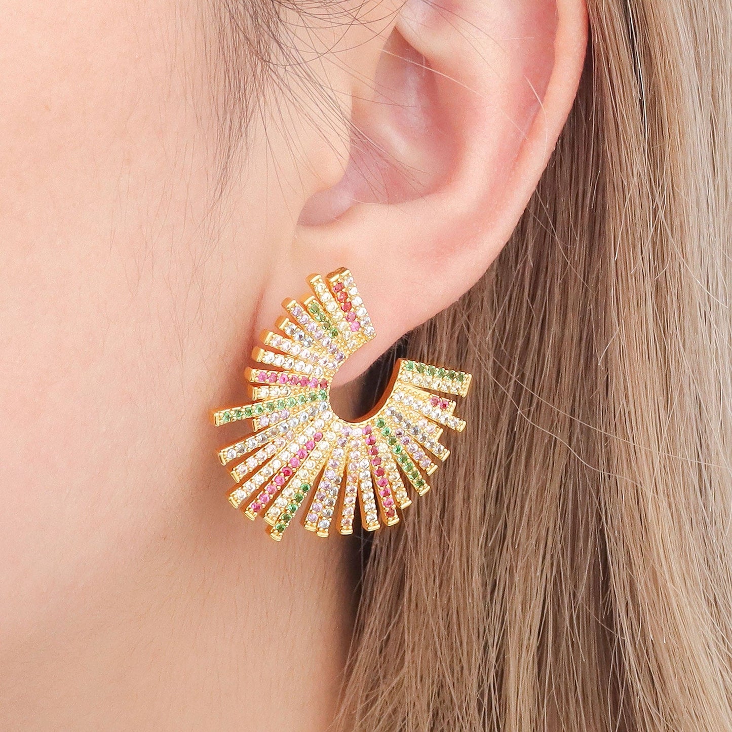 Brinco em latão de alta fusão cravejado manualmente com micro zircônia 5A Premium, nas opções de banho Ouro 18k, Ródio branco ou Bruto.