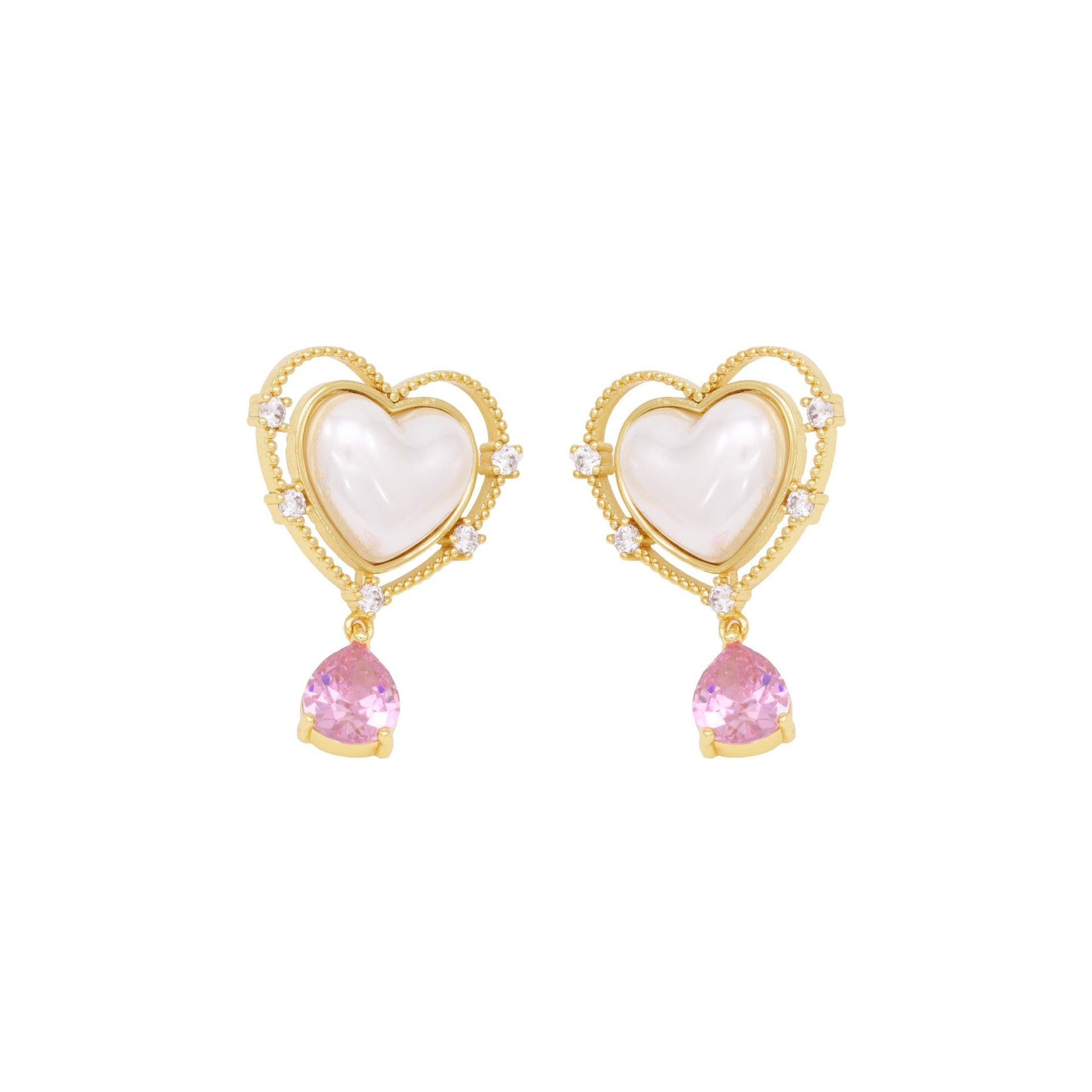 DESC-Brinco Coração Madre Perola e Gota XYE104571 earring