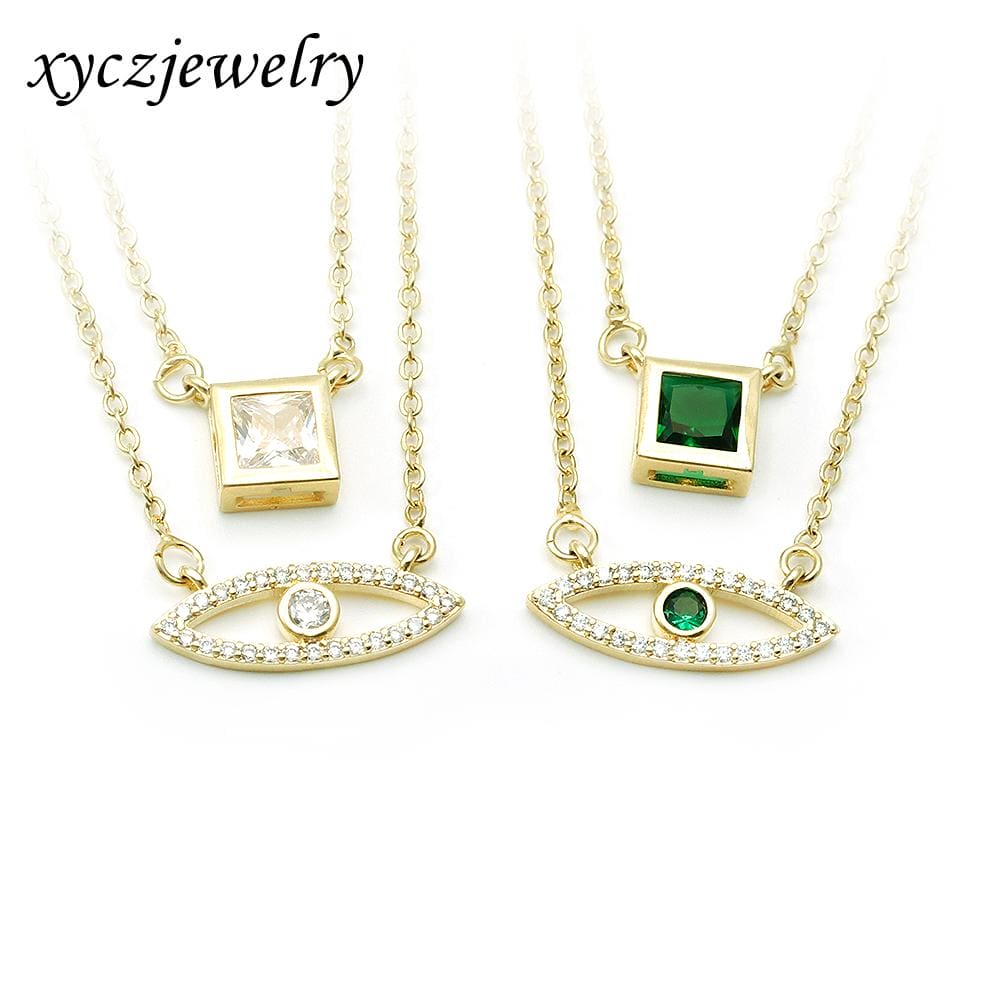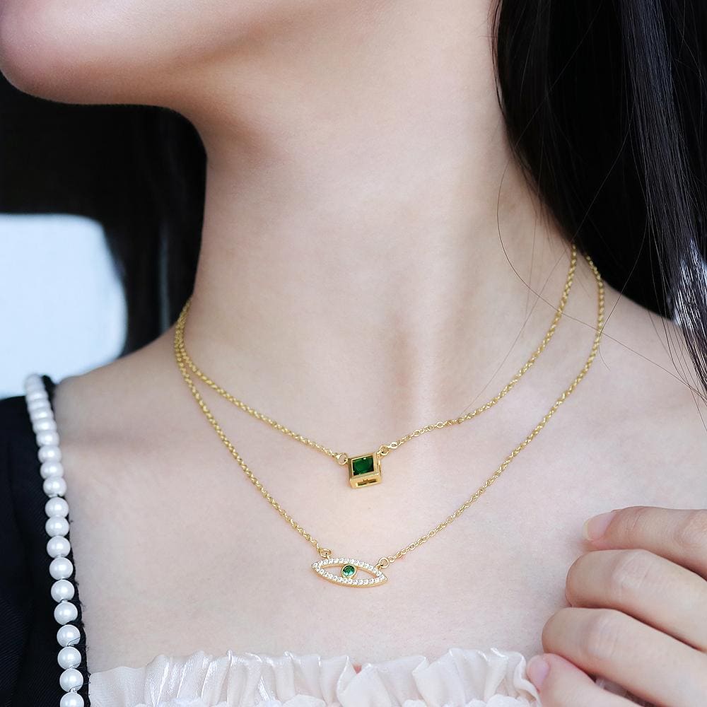 Colar duplo em latão de alta fusão cravejado manualmente com micro zircônia 5A Premium e vidro lapidado, nas opções de banho Ouro 18k, Ródio branco ou Bruto.