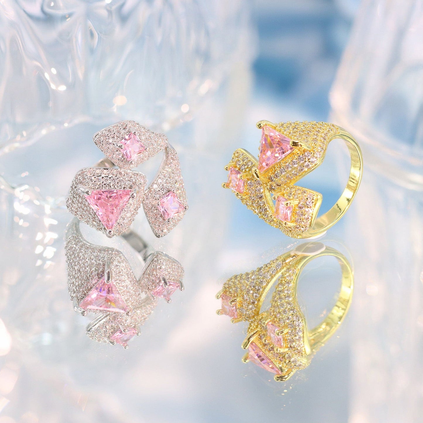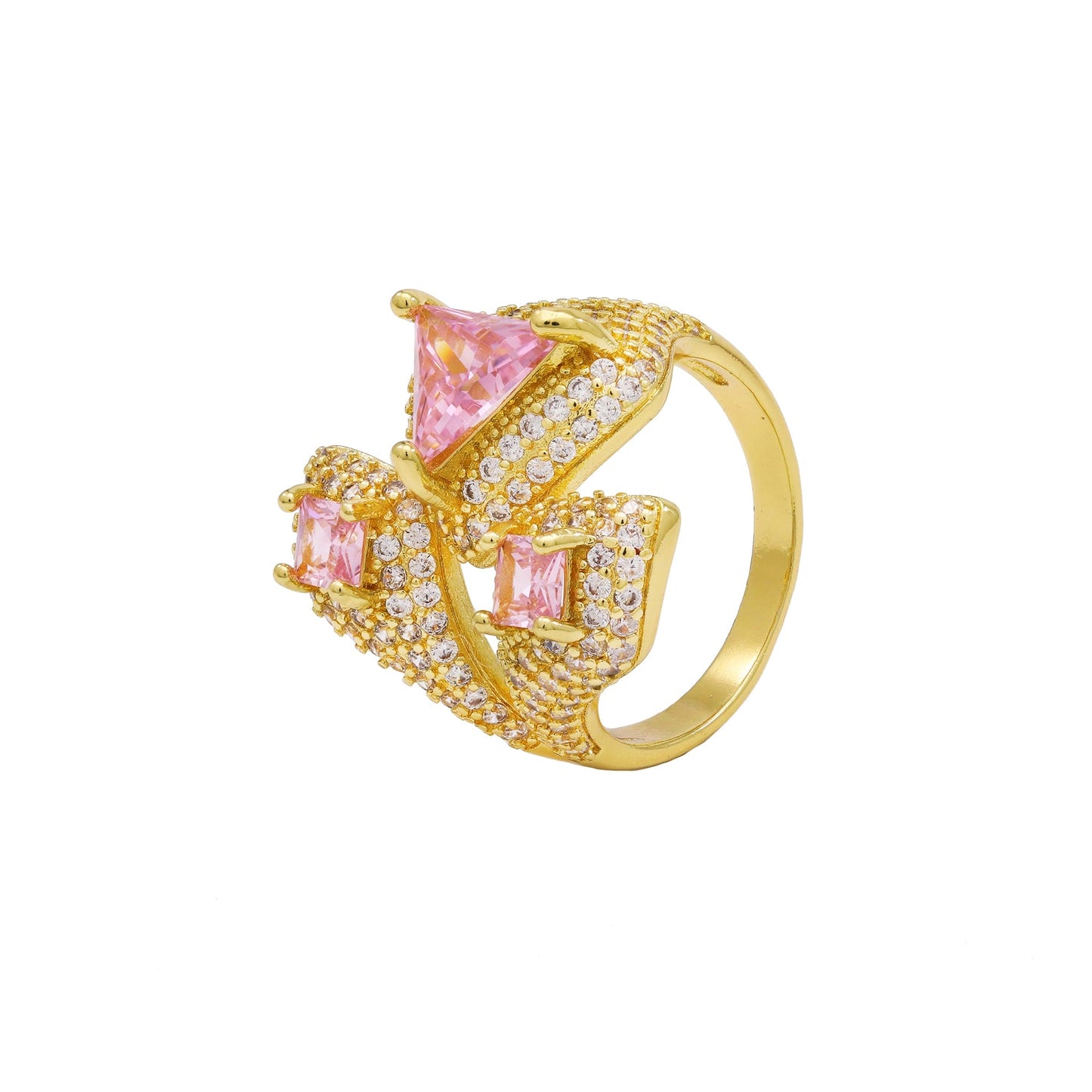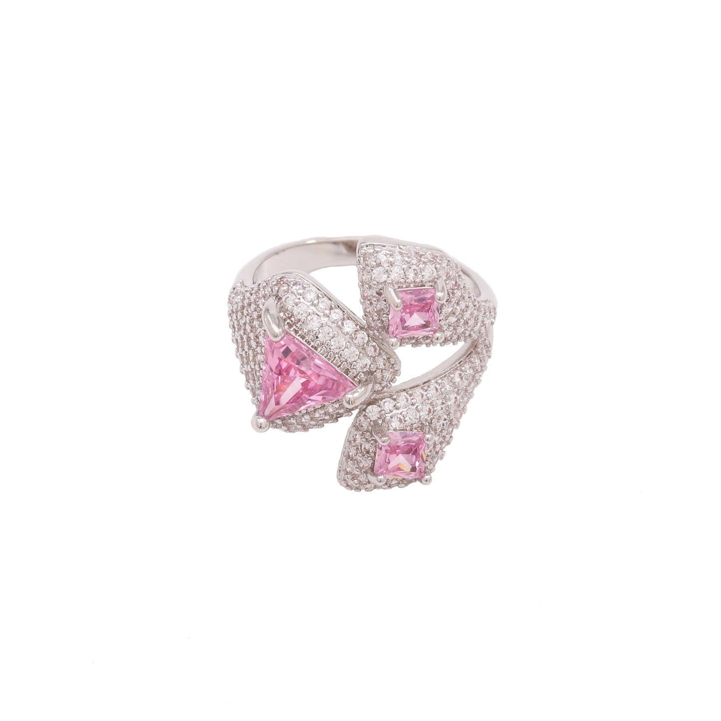 Pedra: Micro zircônia cristal e carrê, triangulo e losango na cor rosa