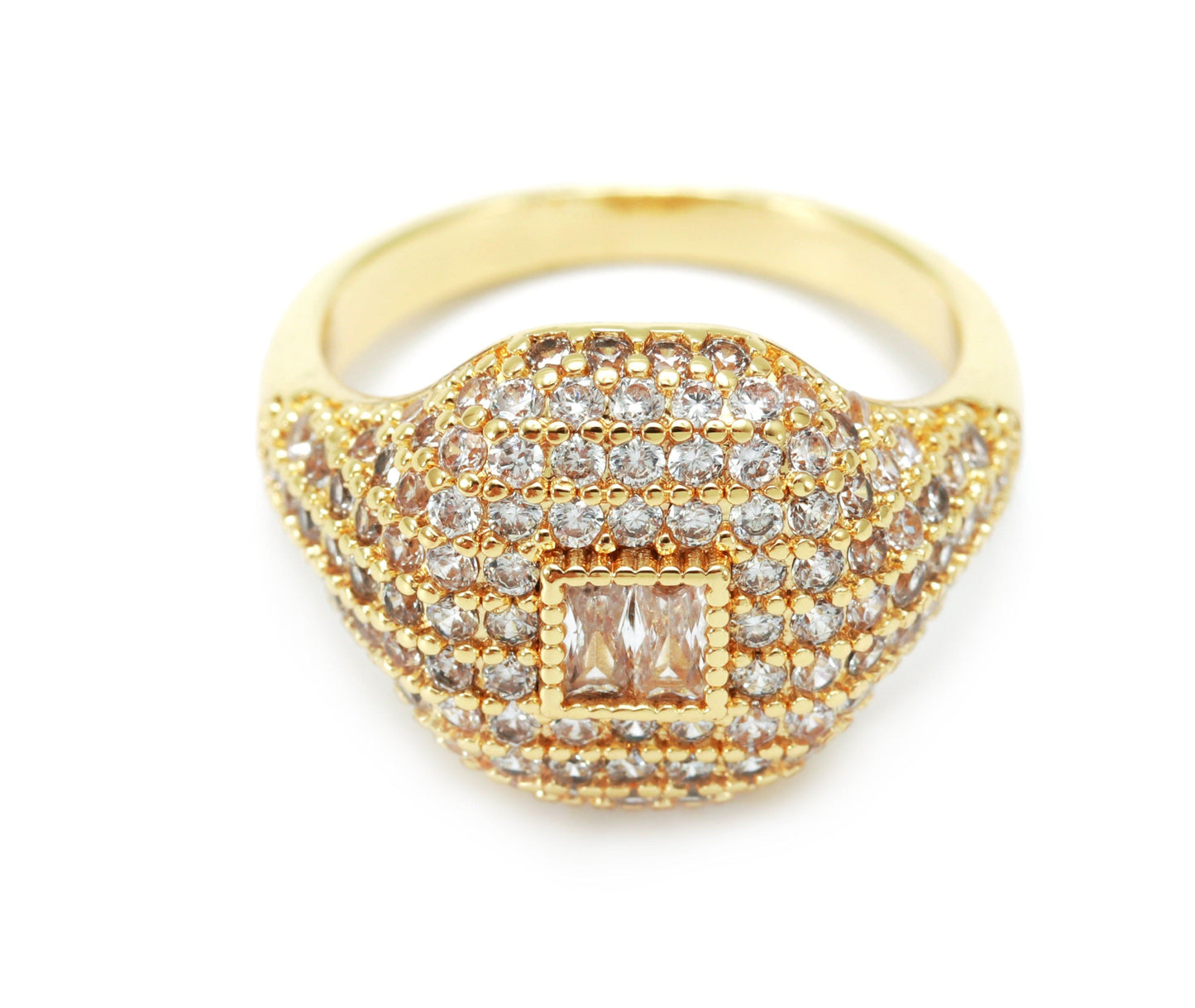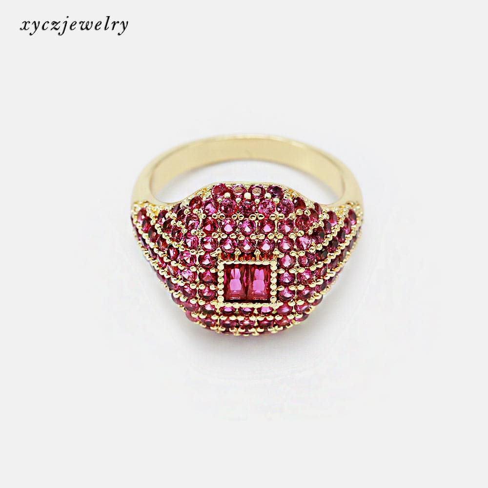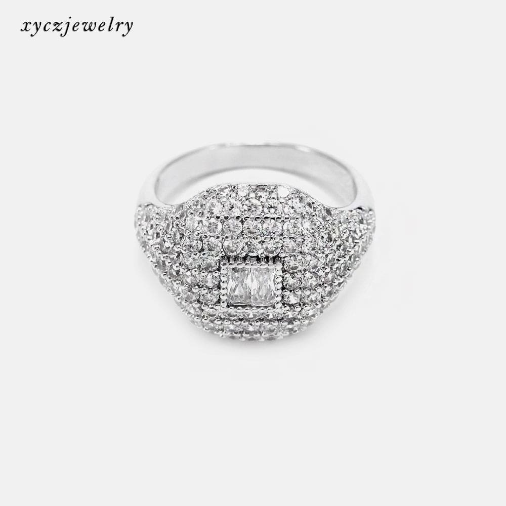 Anel bombê com zircônias e pedras carrê no atacado - XYR103095