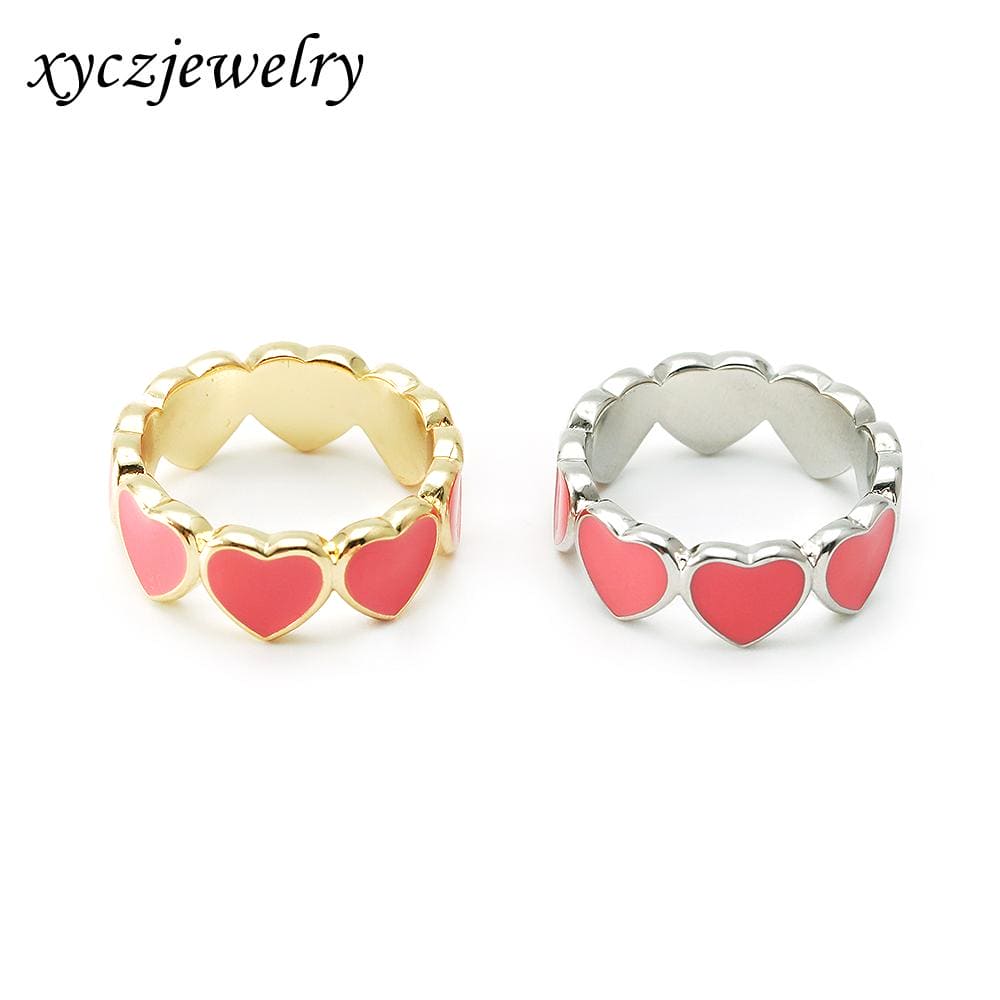 Compre anel de corações com resina rosa no atacado para revenda com a melhor pedra de zircônia do mercado, a zircônia 5A, banho de Ouro 18K e garantia de 1 ano direto da fábrica. Tudo com a Xingyu, a marca de semijoias para o atacadista que mais cresce no mercado.