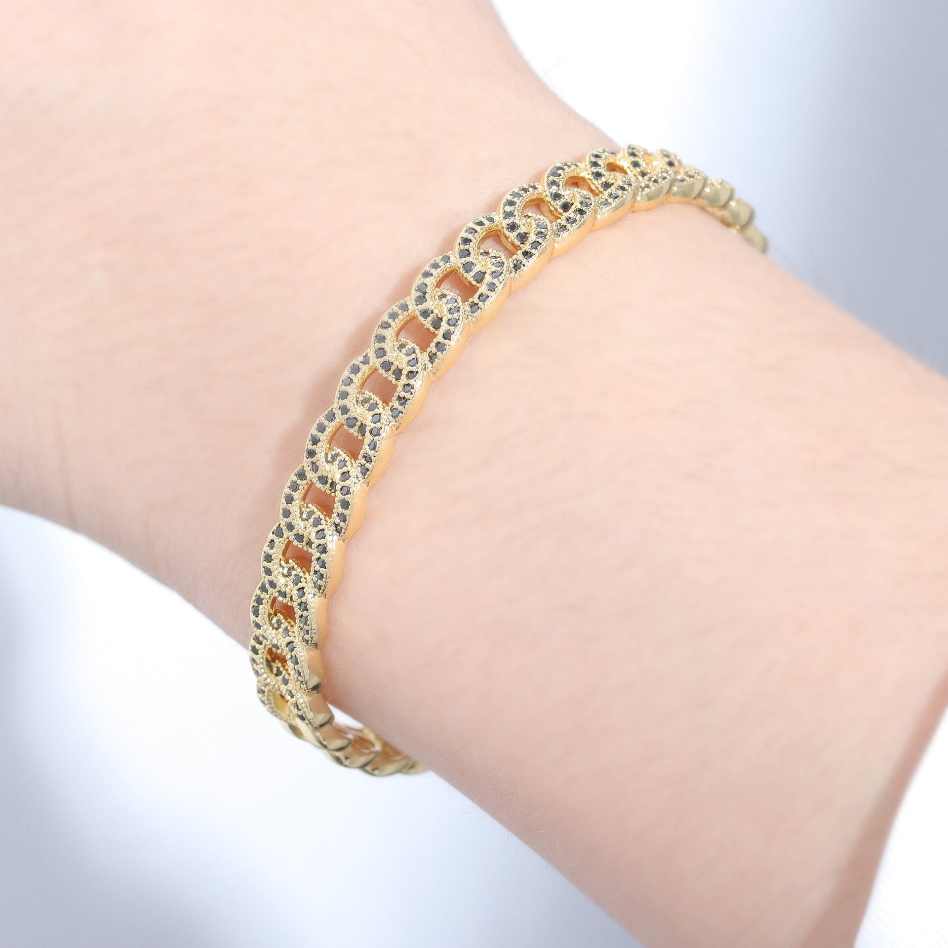 Bracelete de alta fusão cravejado manualmente com micro zircônia 5A Premium, nas opções de banho Ouro 18k, Ródio branco ou Bruto.Circunferência: 200mm