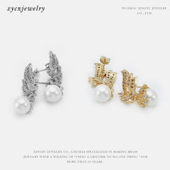 Brinco em latão de alta fusão cravejado manualmente com micro zircônia 5A e pèrola shell, nas opções de banho Ouro 18k, Ródio branco
