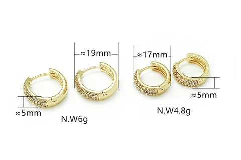 Dupla de argolas em latão de alta fusão cravado manualmente com micro zircônia 5A Premium, nas opções de banho Ouro 18k, Ródio branco