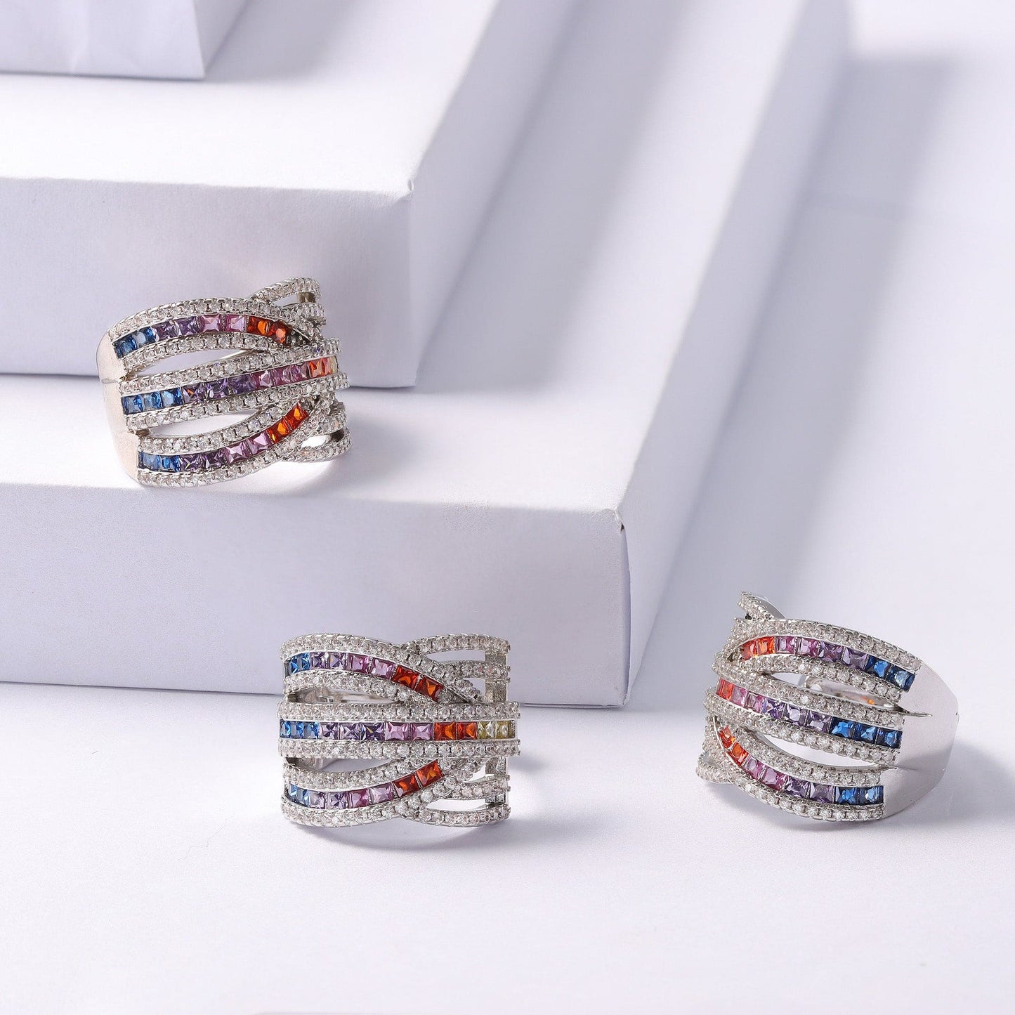 Pedra: micro zirconias cristais e carrês em mix de cores