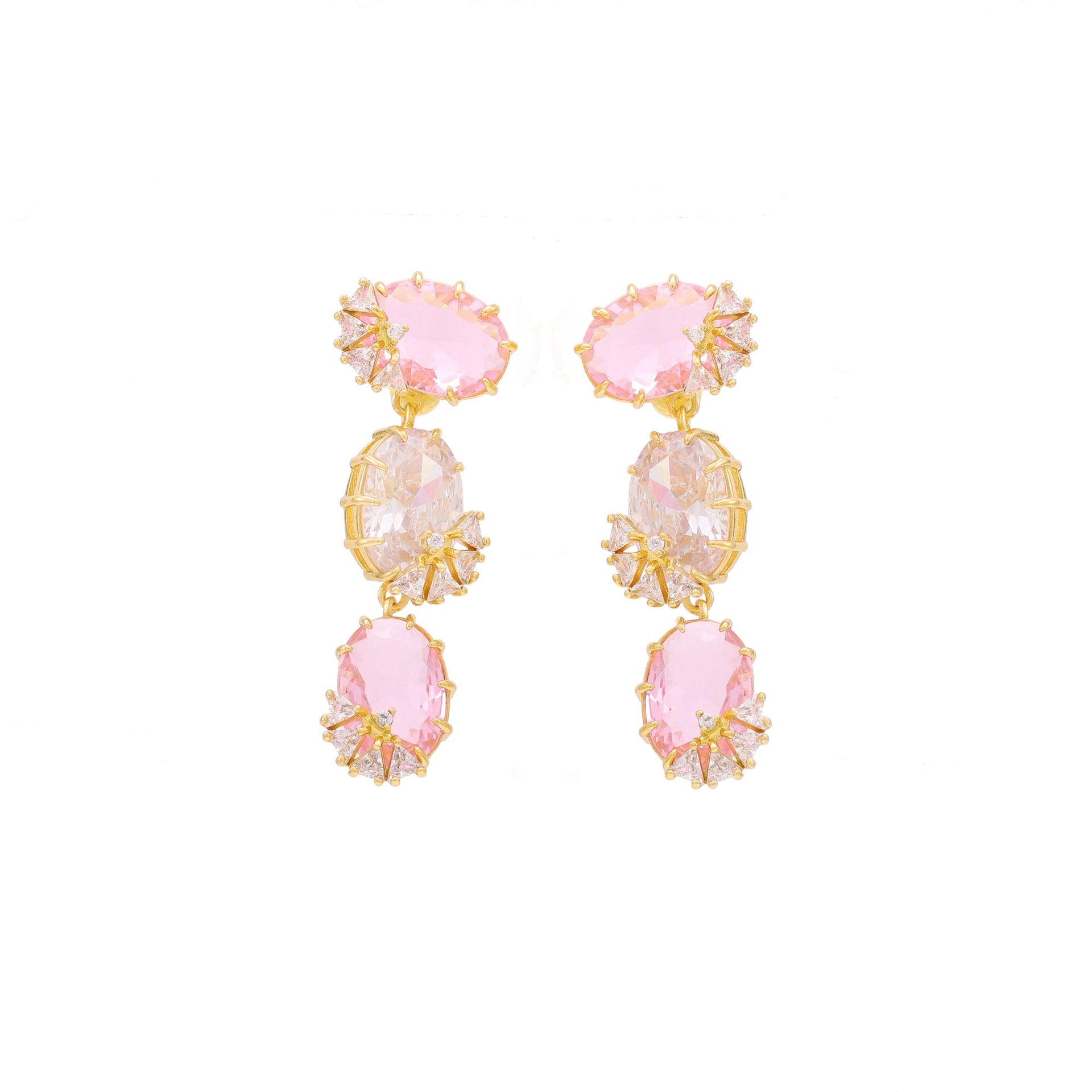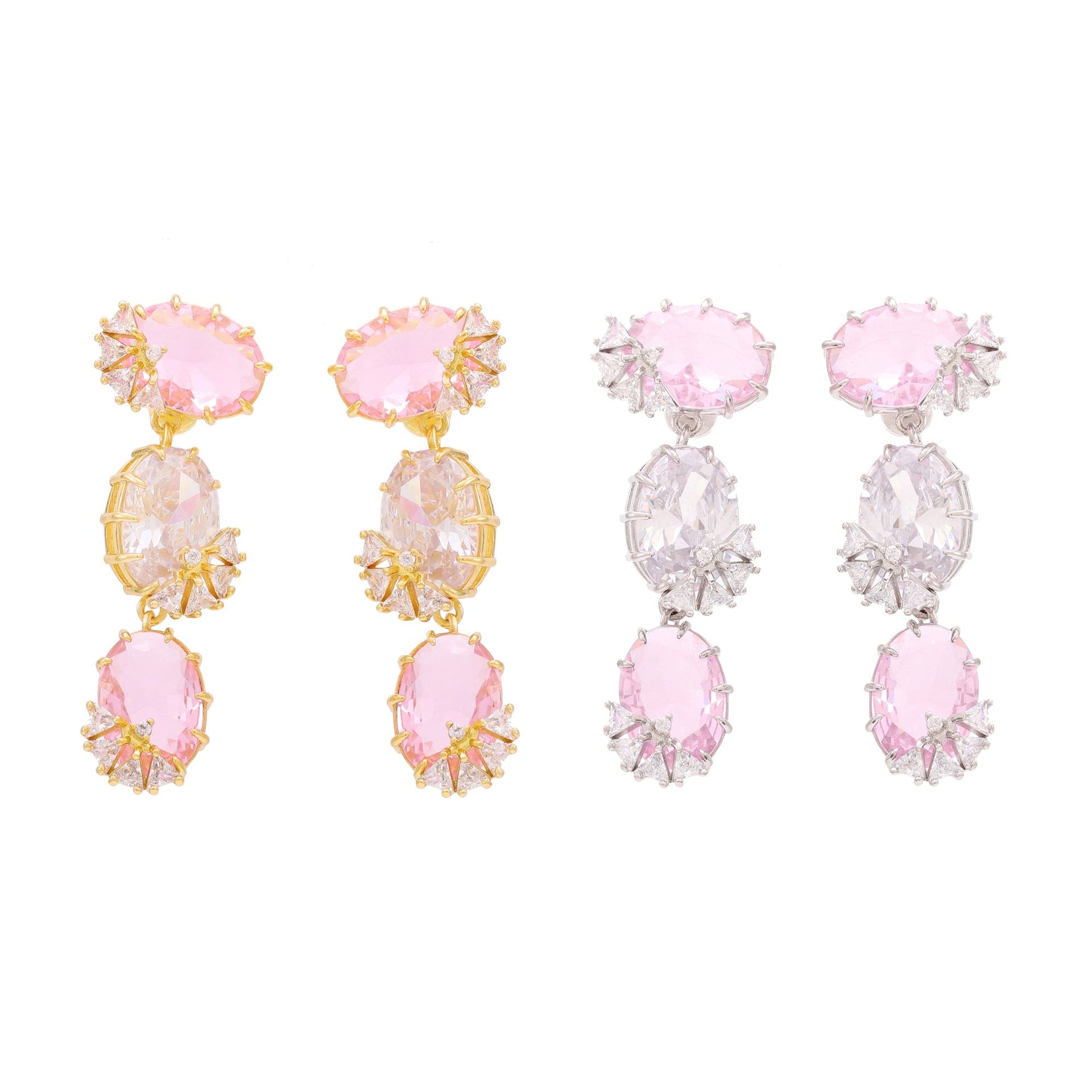 Brinco em latão de alta fusão cravejado manualmente com vidro lapidado e nas opções de banho Ouro 18k, Ródio branco .